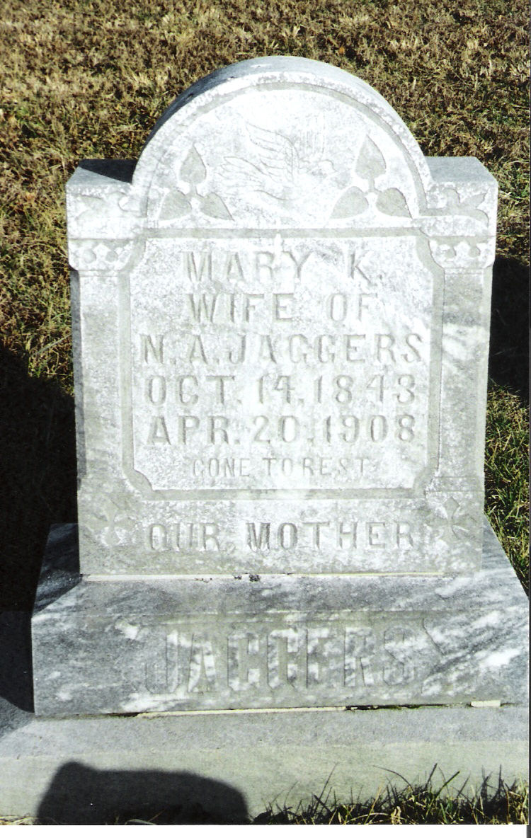 | Jaggers | Mary K. | 14 Oct 1843 | 20 Apr 1907 | w/o N.A.; "Gone to Rest"; "Our Mother" | 31 |
