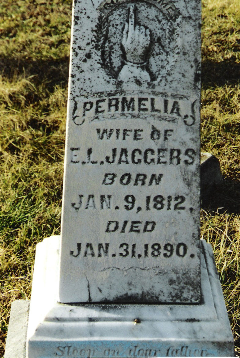 | Jaggers | Permelia | 9 Jan 1812 | 31 Jan 1890 | w/o E.L.; "Sleep on death father" | 33 |