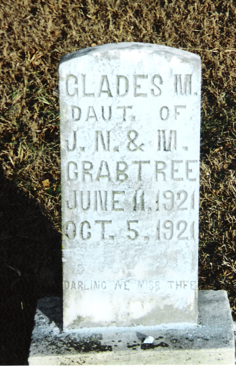 | Crabtree | Glades M. | 11 Jun 1921 | 5 Oct 1921 | do J.N. & M; "Darling we miss thee" | 6 |