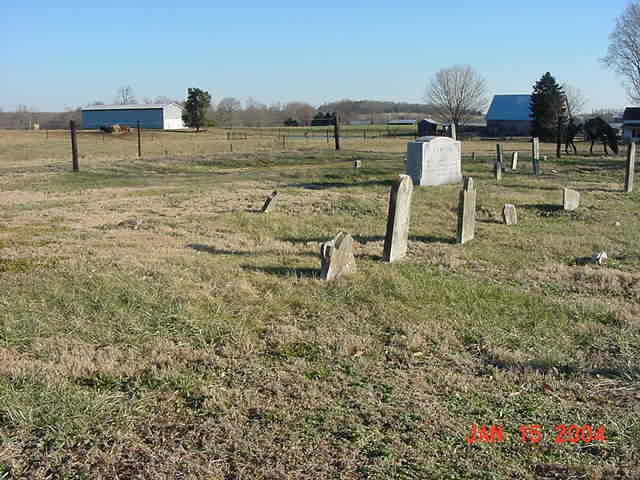 Information below is from Robert Teesdale in 2001 and Carolyn Puckett Olney in Janurary 2004: "Jeremiah Dawson and several of his kids were buried in this cemetery; and some of the field stones are gravesites of his slaves. The cemetery is on the old original Dawson farm and next to where Jeremiah Dawson's house once stood. The cemetery is located adjacent to and on the left side of the D.W. Meredith Road. "An elderly lady who lived across the field from the cemetery told this story: 'Some local bad guys heard he (Jeremiah Dawson) had a lot of money in his house, and they came to rob him. To make him give them the money, they shot off one of his ears. There is now a house that was built on the site of the original home. Some of his kids and grandkids are buried there too. That is where Ransom Amos Dawson and some of his kids are buried too. "He (Jeremiah Dawson) enlisted in the Revolutionary Army at the age of 17 and fought at Guilford Courthouse, NC. He was a sober man with excellent habits, simple tastes and high moral character. He received an ordinary English education, possessed strong natural sense, was six feet two inches in height, large 'raw boned' and muscular, a man of great physical power. He cared little for the acquisition of wealth, devoting his early years to the manly sports of bear and deer hunting, only giving that attention to his farm required for the maintenance of his family, and the education of his children. He had five sons and six daughters." Return to Hart County Archives Problems or bad links should be reported to the webmaster. ©Copyright 2004-2005 by Sherri Hall for the Hart County, KY USGenWeb Archives. All files on this website are copyrighted by their submitter and creator. They may be linked to, but may not be reproduced on another website or in any other form, without specific permission of