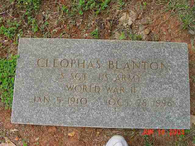 | Blanton | Cleophas | 5 Jan 1910 | 38 Oct 1998 | S SGT US Army WWII; ossw Gertie | 001, 064 |