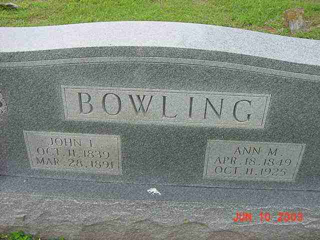 | Bowling | John L. | 11 Oct 1839 | 28 Mar 1891 | ossw Ann M. | 003 |