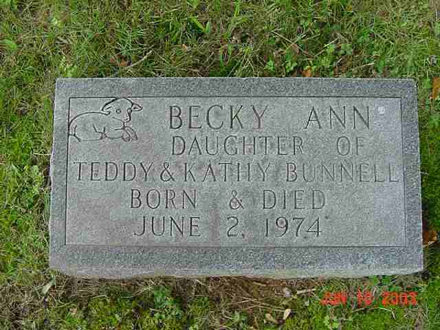 | Bunnell | Becky Ann | 2 Jun 1974 | 2 Jun 1974 | d/o Teddy & Kathy Bunnell | 005 |