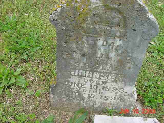| Johnson | Infant Daughter | 10 Jun 1893 | 17 ? 1894 | d/o S. & L.E. | 009 |