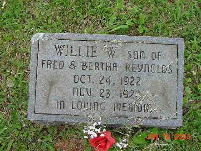 | Reynolds | Willie W. | 24 Oct 1922 | 23 Nov 192_ | s/o Fred & Bertha Reynolds; in loving memory | 023 |