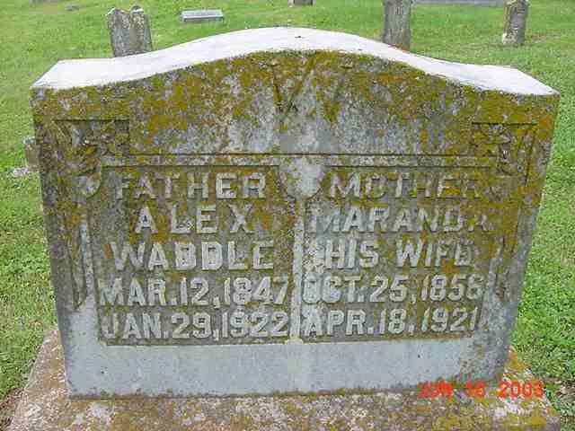 | Waddle | Maranda | 25 Oct 1856 | 18 Apr 1921 | ossw Alex; "Mother", "His Wife" | 028 |