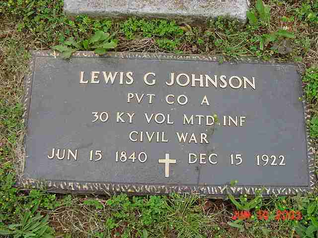| Johnson | Lewis G. | 15 Jun 1840 | 15 Dec 1922 | PVT Co. A, 30 KY VOL MTD INF, Civil War | 055 |