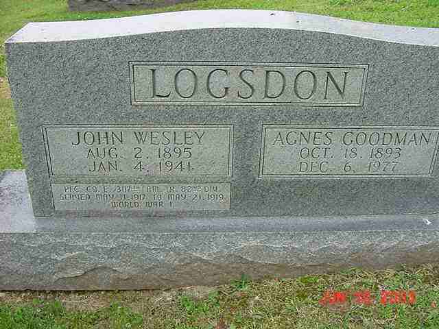 | Logsdon | Agnes Goodman | 18 Oct 1893 | 6 Dec 1977 | ossw John Wesley | 060 |