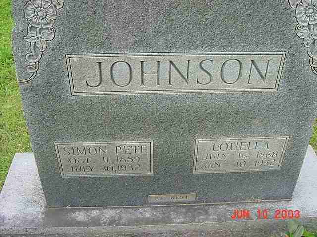 | Johnson | Louella | 16 Jul 1868 | 10 Jan 1952 | ossw Simon Pete | 076 |