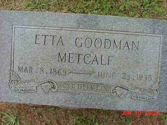 | Metcalf | Etta Goodman | 8 Mar 1869 | 23 Jun 1935 | "Rest in Peace" | 080 |
