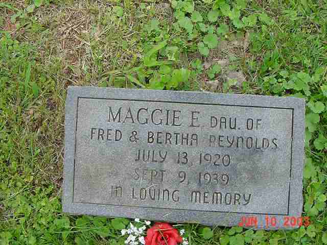| Reynolds | Maggie E. | 13 Jul 1920 | 9 Sep 1939 | d/o Fred & Bertha Reynolds | 089 |