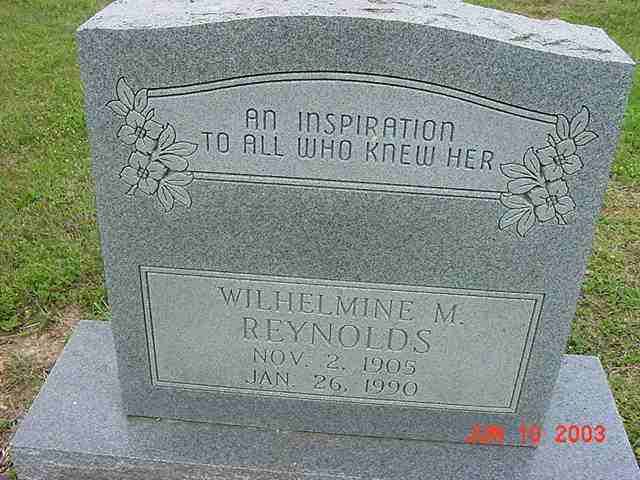 | Reynolds | Wilhelmine M. | 2 Nov 1905 | 26 Jan 1990 | "An inspiration to all who knew her" | 091 |