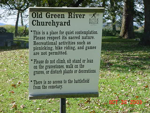 | Old Green River Church Sign | Old Green River Church Steps | Old Green River Church Steps (2) | Moseleum View | Battle of Munfordville Sign |