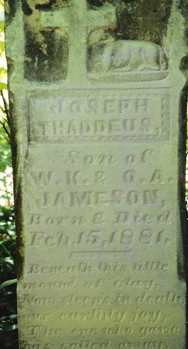 w/o W.K. & D.A.; "Beneath this little mound of clay now sleeps in death our earthly joy. The one who gave has called caled away."; "Our darling little baby boy"