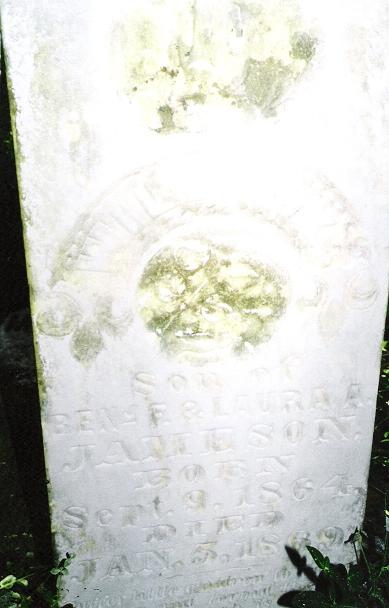 s/o Ben F. & Laura A.; Footstone: "WKJ"; "Suffer little children to come unto me & forgive them not for of such is the Kingdom of Heaven."