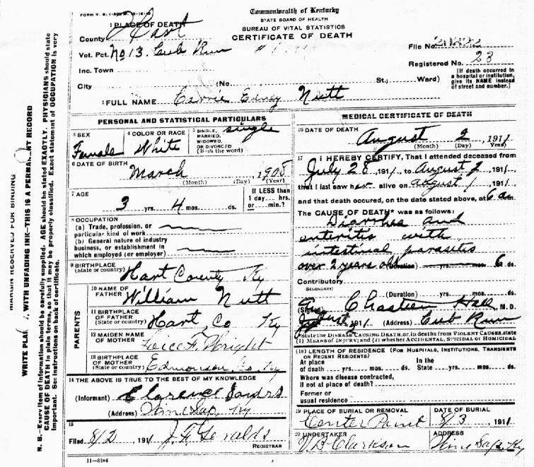 Nutt, Carrie Edney, 1911, Death Certificate |