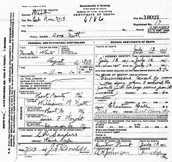 Nutt, Dora, 1911, Death Certificate |