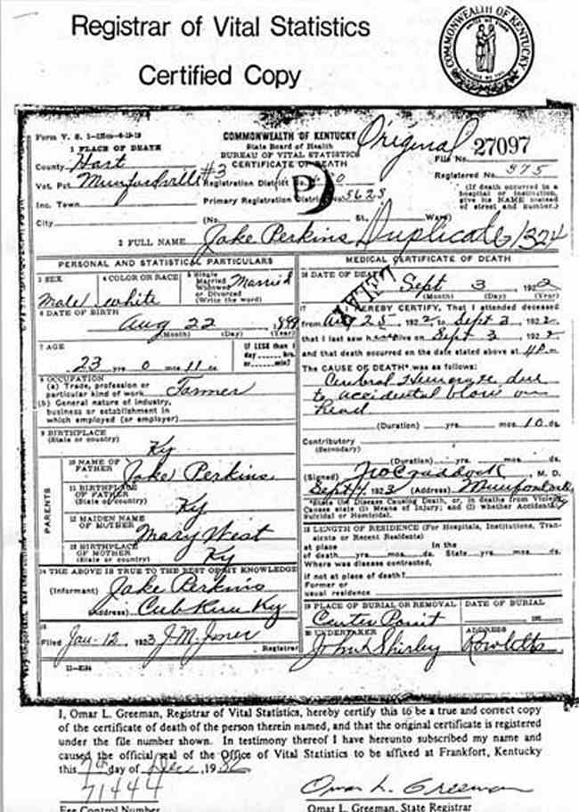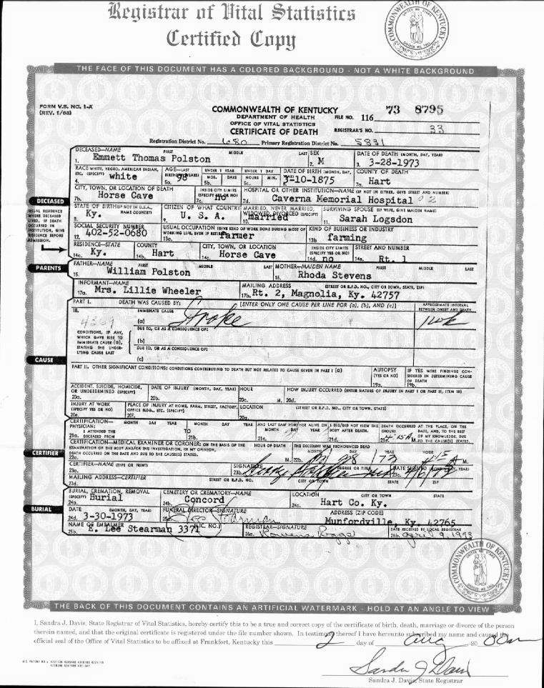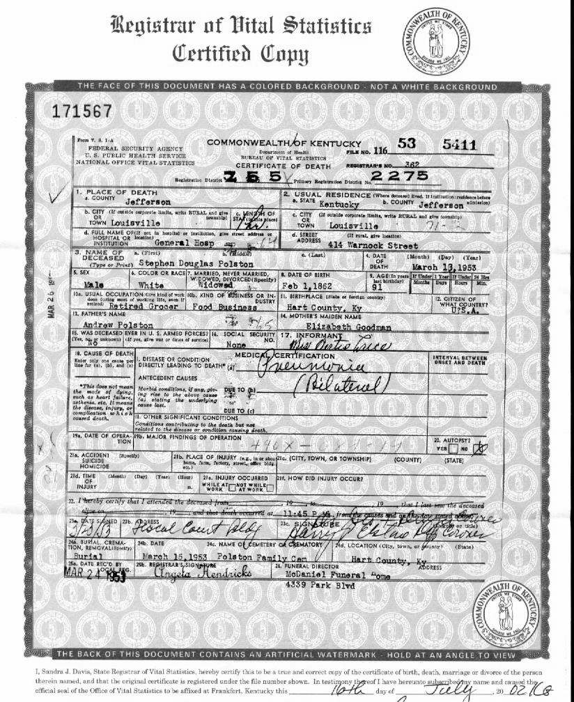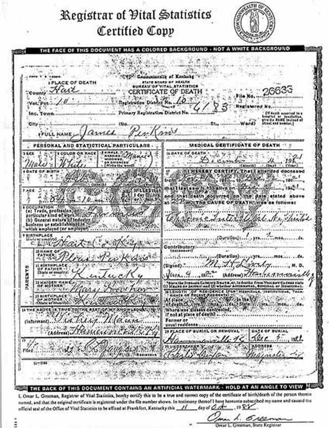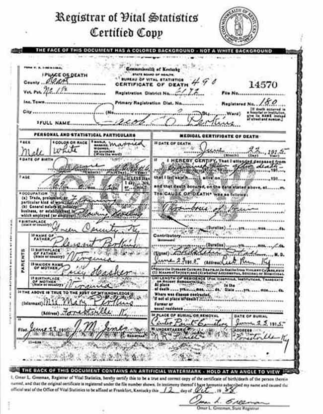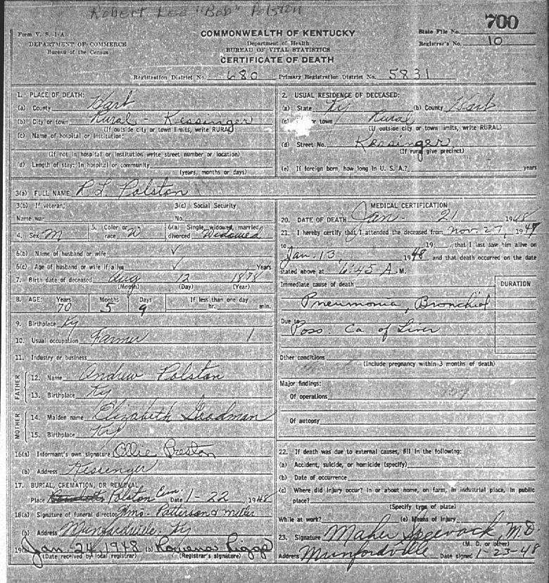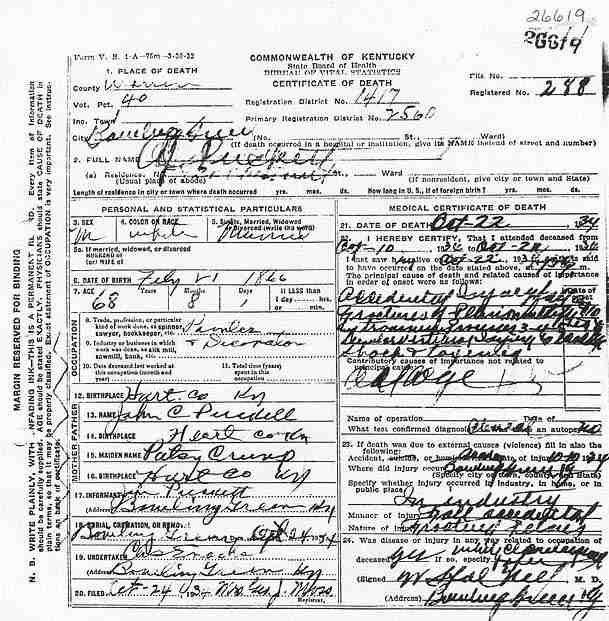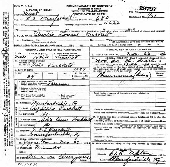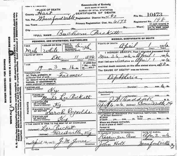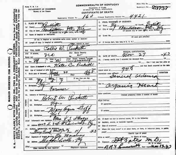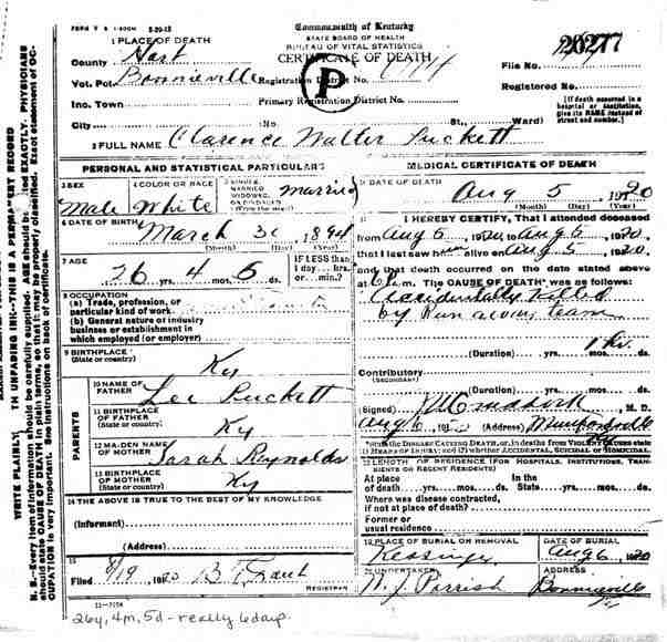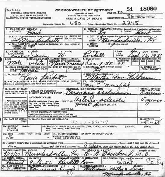 Puckett, Louis, 1919, Death Certficate |