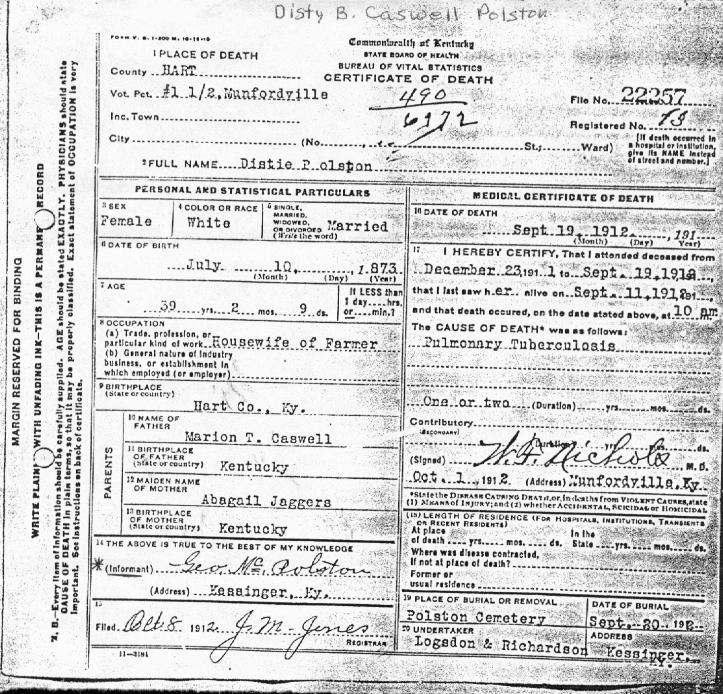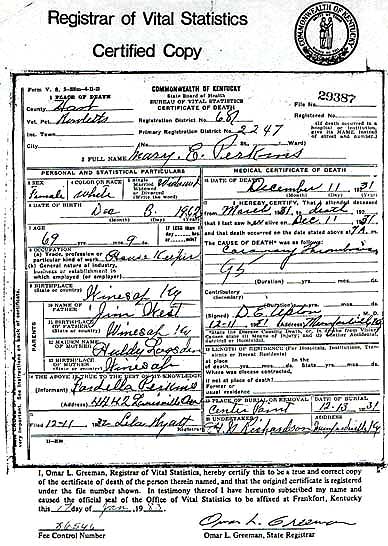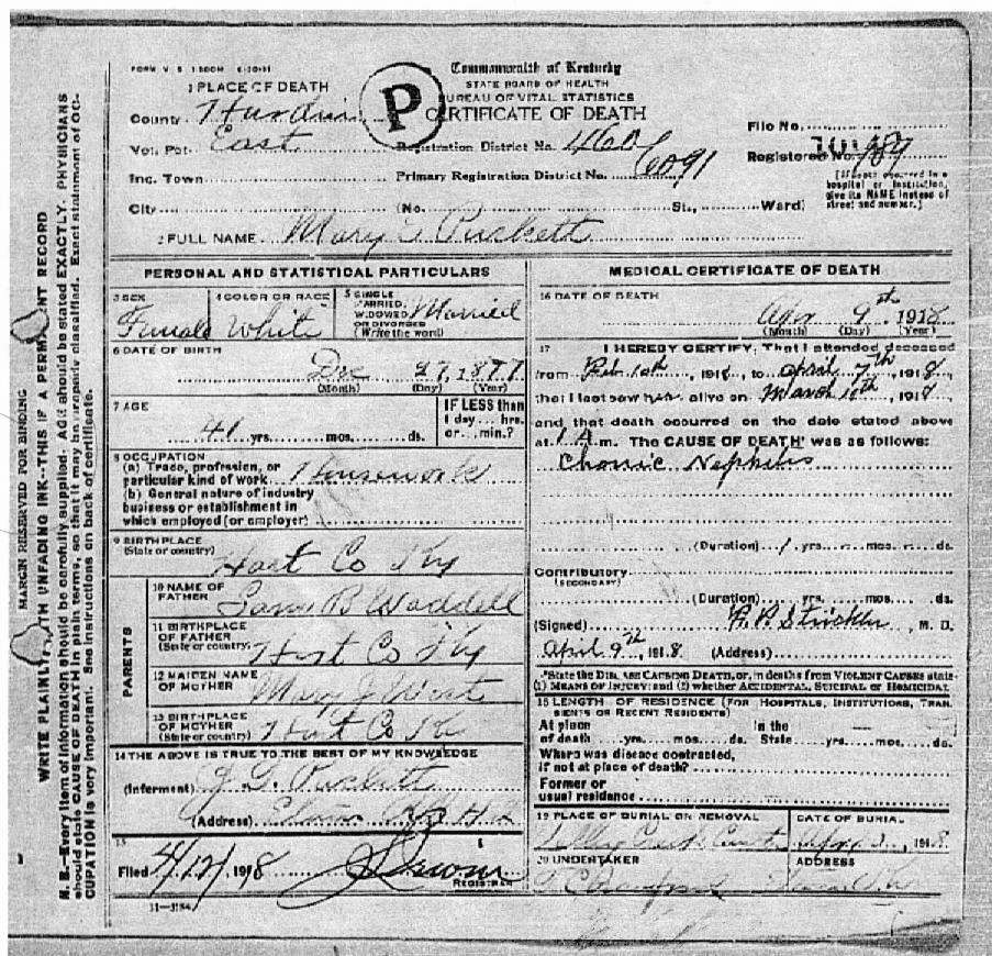Puckett, Mary E., 1918, Death Certificate |