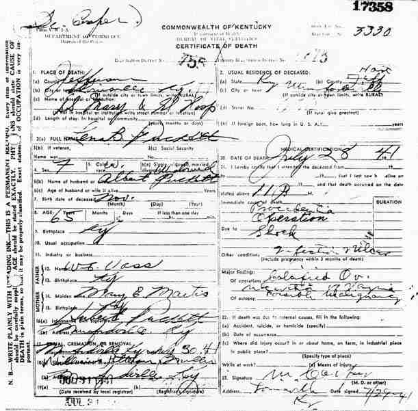 Puckett, Lena, 1941, Death Certificate |