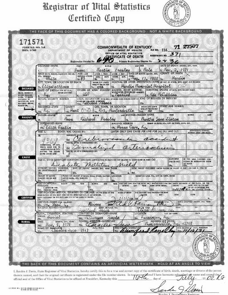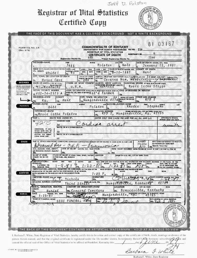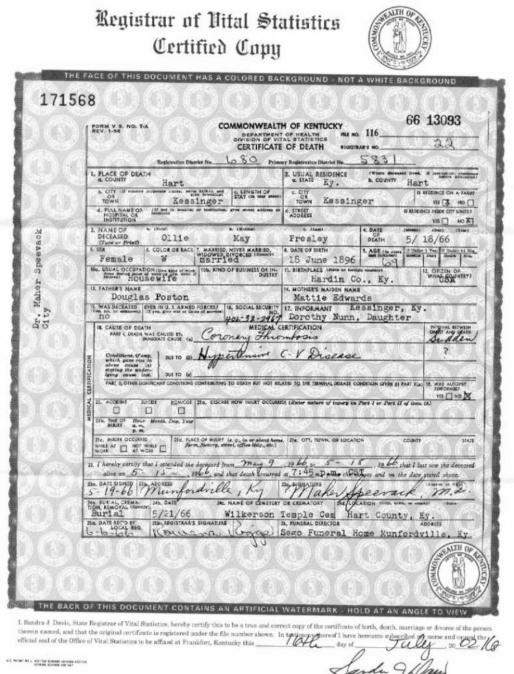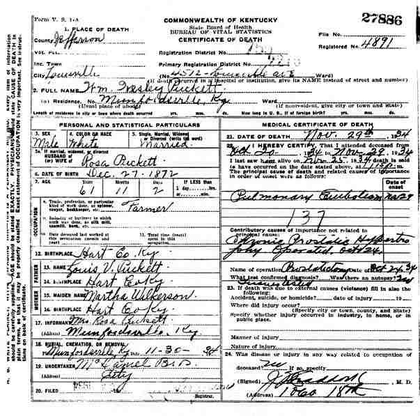 Puckett, William Wesley, 1934, Death Certficate |