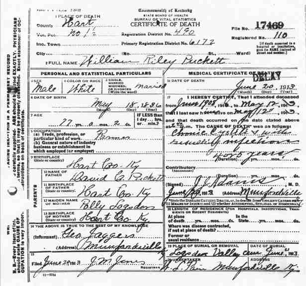 Puckett, William Riley, 1913, Death Certficate |