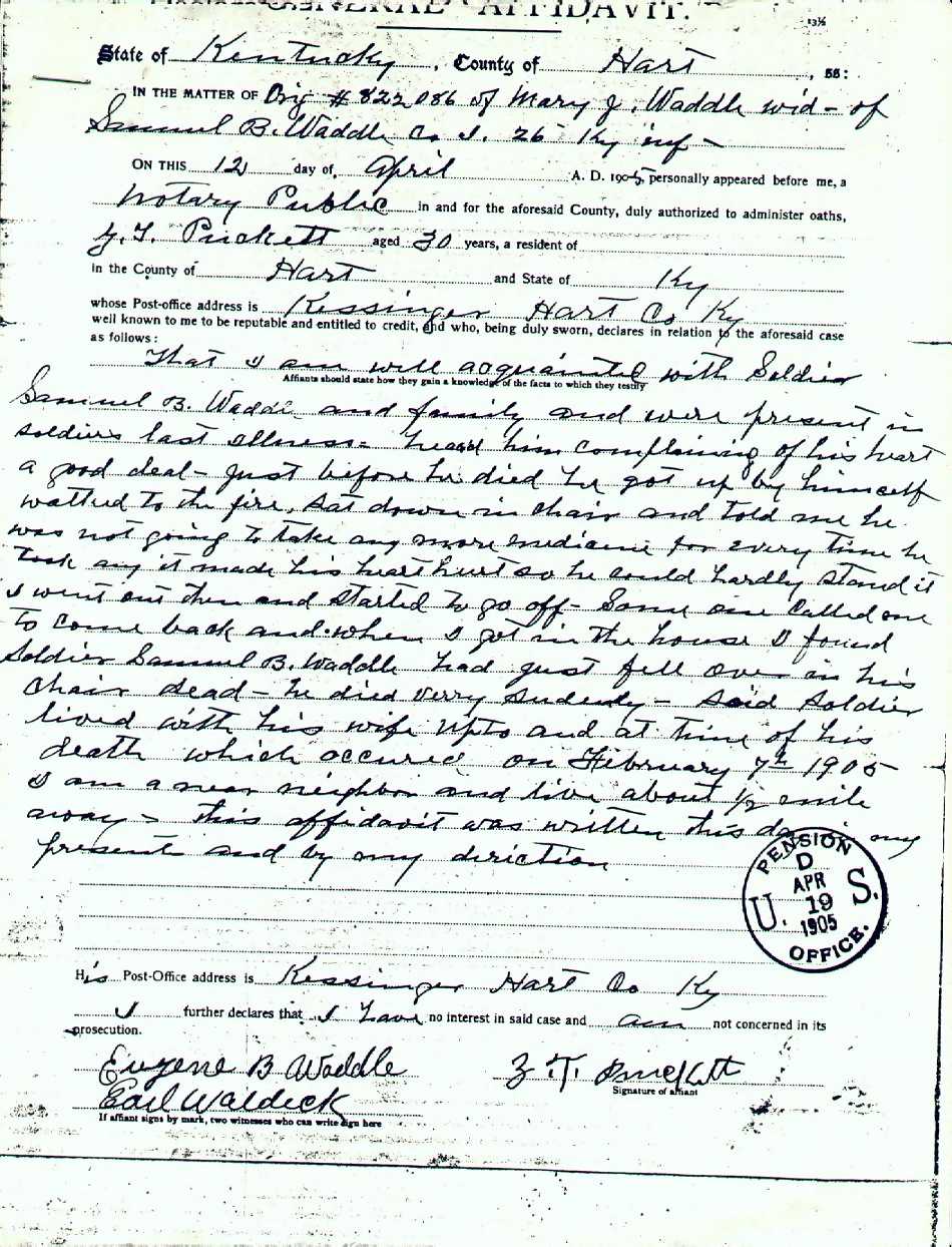Waddle, Samuel B., Civil War Pension Application, p. 3 |