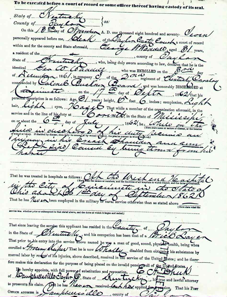 Waddle, George W., Civil War Pension Application, p. 2 |