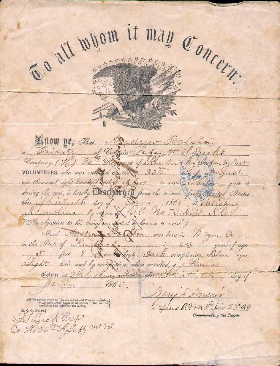 Polston, Andrew, Civil War Discharge Papers |