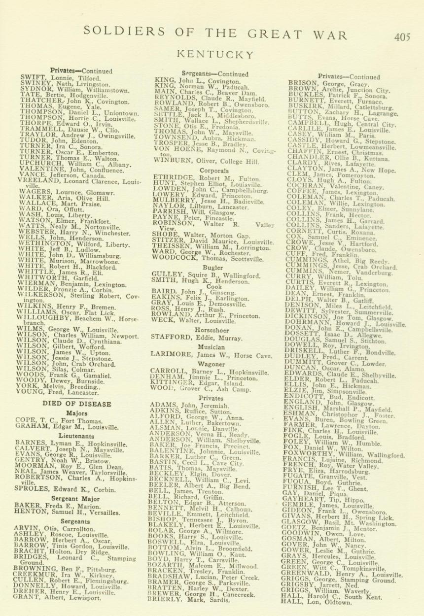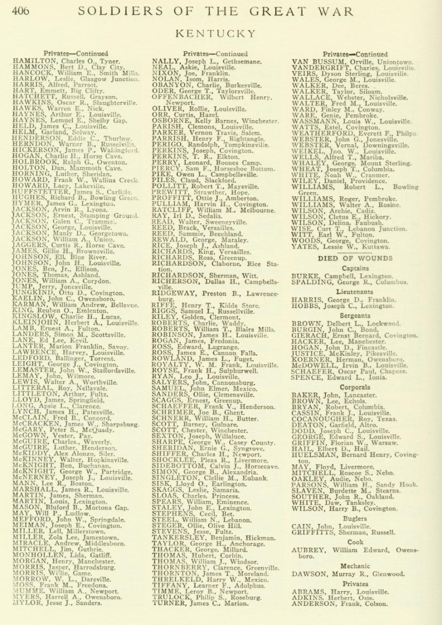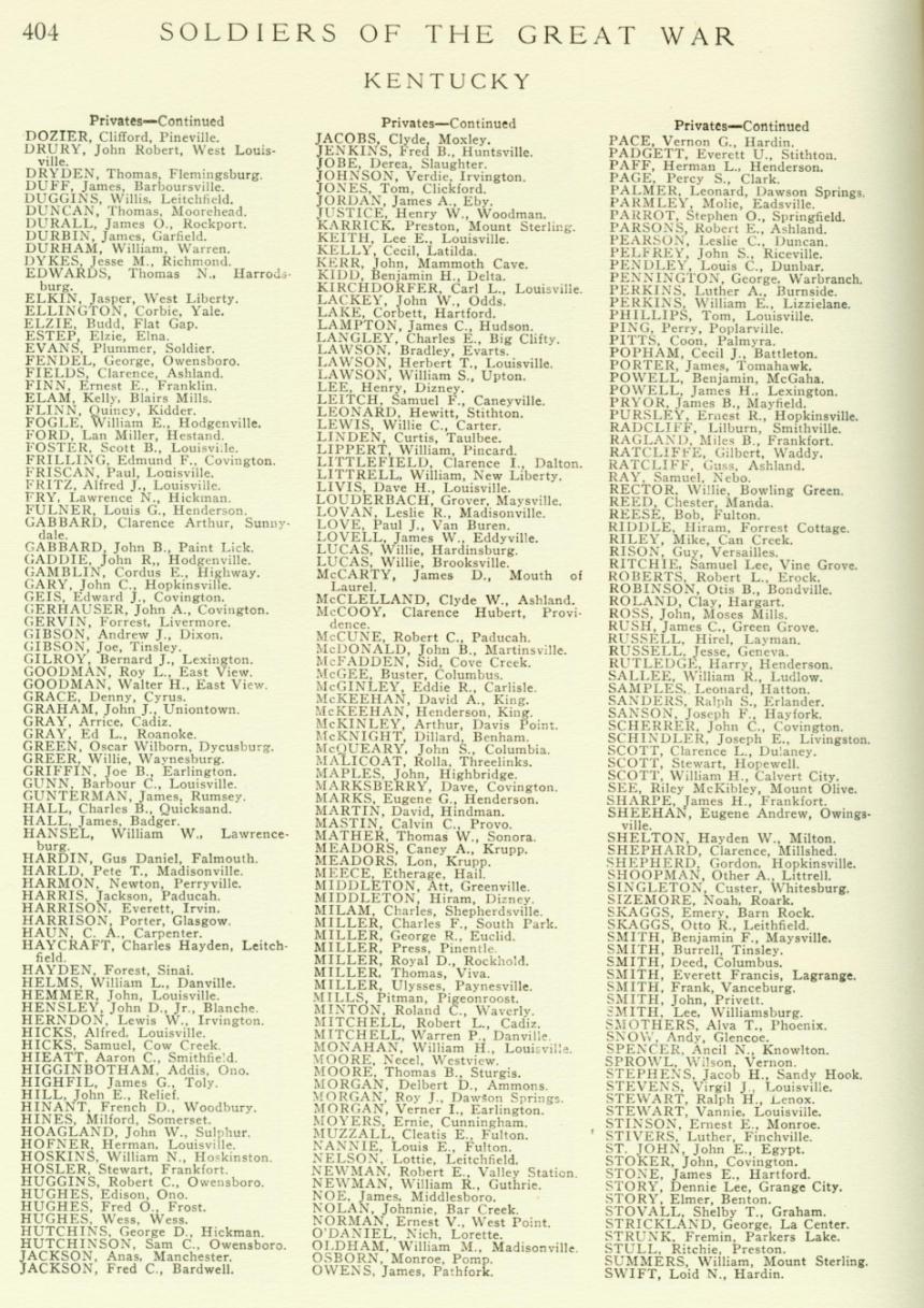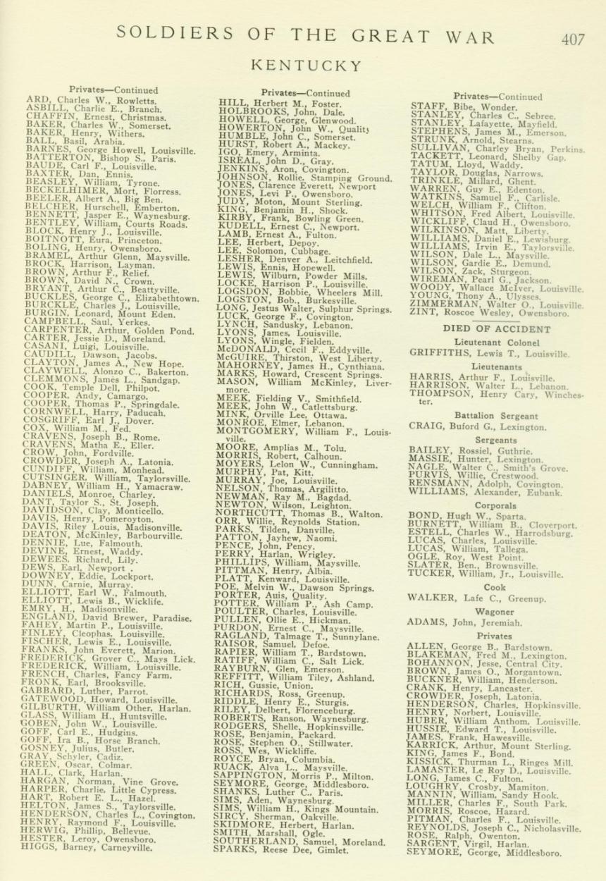 "Soldiers of the Great War" Fallen Kentucky Soldiers in WWI Pendleton County |