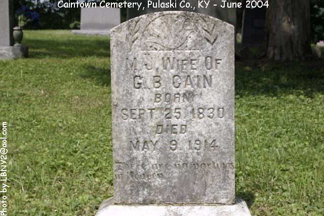 | M.J. | 25 Sep 1830 | 09 May 1914 | "Wife of G.B. Cain"; Photo | LBNY2@aol.com | |