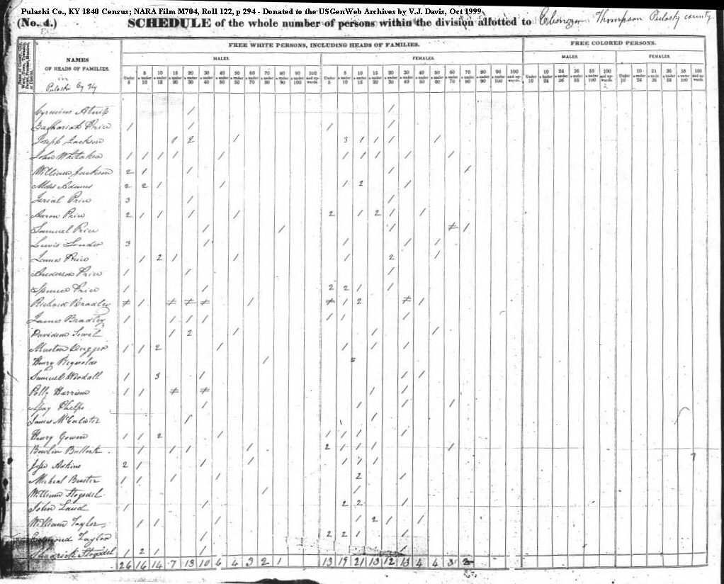Prather, Phillip Preston, Morgan Price, Aaron Price, Anderson Price, Isreal Price, James Price, James Price, James Price, Samuel Price, Sarah Price, Silas Price, Spencer Price, Spencer Price, William Price, Zachariah Price, Zachariah Purvis, James |