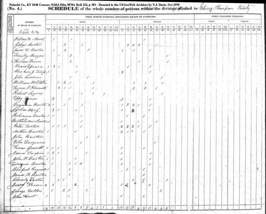 Burk, Thomas Burkhart, John Burkhart, Joseph Burns, Horatio Burnes, James Burns, Jerry Burton [Buster?], Charles Burton, Bartholamew Burton, Benjamin Burtin, Benjamin Burton, Edmond G. Burton, Edward Burton, Ellis Burton, James B. Burtin, James K. Burton, Jessey Burton, John Burton, John Burton, John Burton, John W. Burton, Nancy Burton, Nathan Burton, Robenson Burton, William Burton, William D. Buster [?], Charles Buster, David Buster, Joe Buster, John Buster, Martha Buster, Micheal Buster, Sarah Buster, Stephen Butt, Adison But, Henry Butt, Reuben H. Butt, Thomas Butt, William |