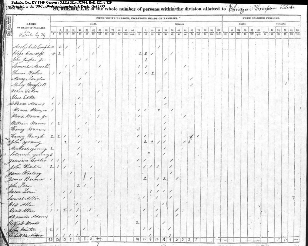 Yancy, Jane Yanders, Chrisly Yates, John Young, John Young, John Jr. Young, Michael Young, Solomon Young, Solomon Zackary, Benjamin Zachary, John Zachary, Willis |