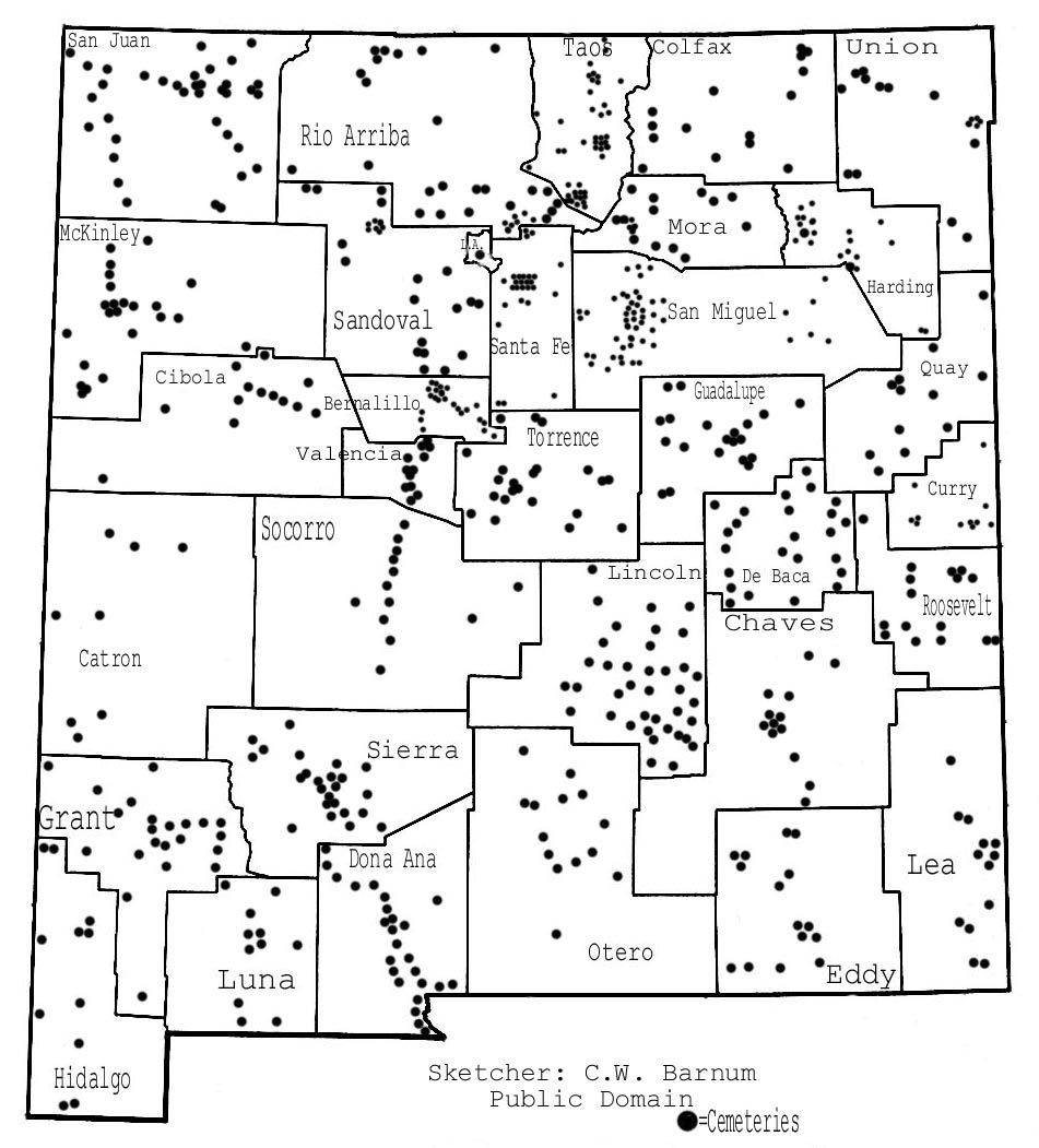 County Cemetery Maps of New Mexico. This is a reference map not to scale.