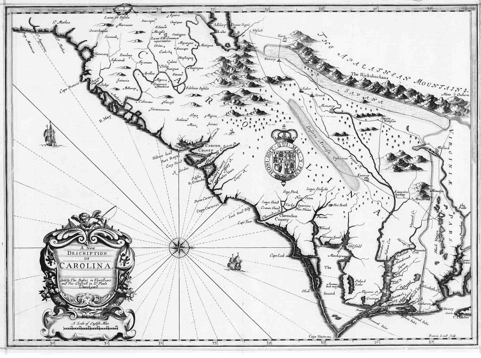 1676 - A New Description of Carolina Size: 275Kb Drawn by: Francis Lamb (?) Source: unknown