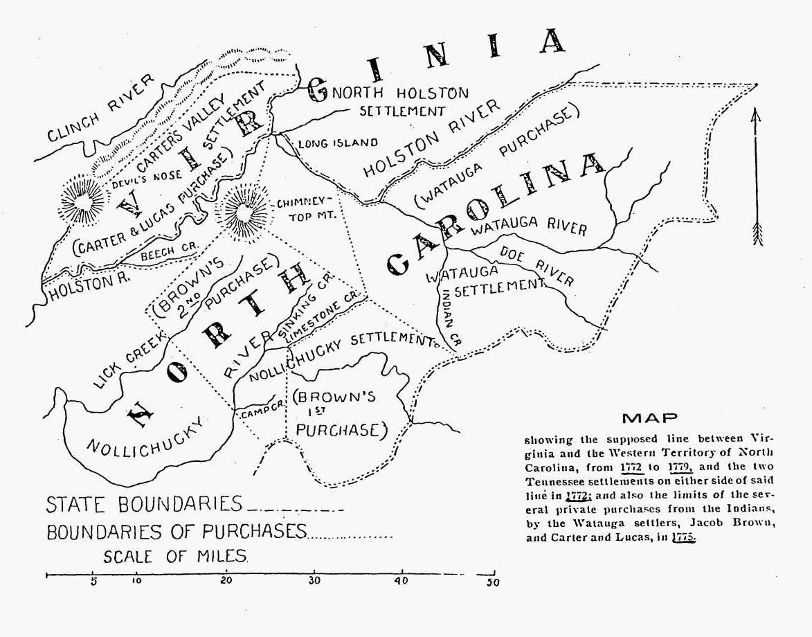 date unknown - State Boundaries Between Virginia, North Carolina and Tennessee Settlements - 1772-1779 Size: 130Kb Drawn by: unknown Source: unknown