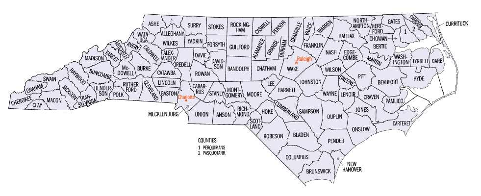 date unknown - Current North Carolina Counties Size: 59Kb Drawn by: unknown Source: unknown
