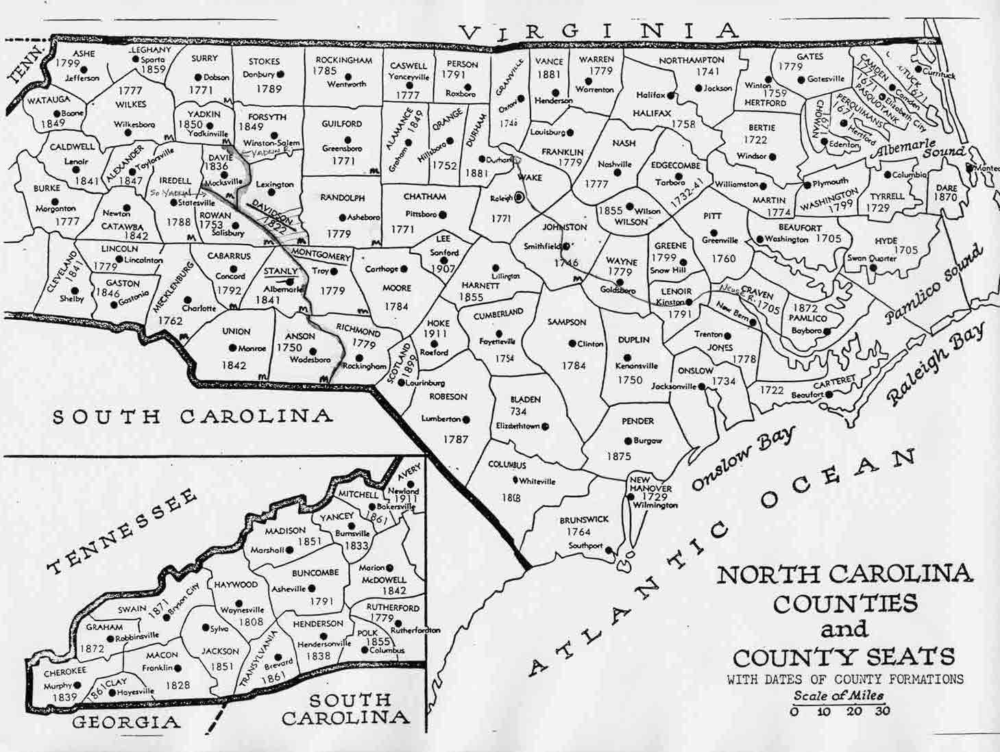 date unknown - North Carolina Counties and County Seats with Dates of Formation Size: 157Kb Drawn by: unknown Source: unknown