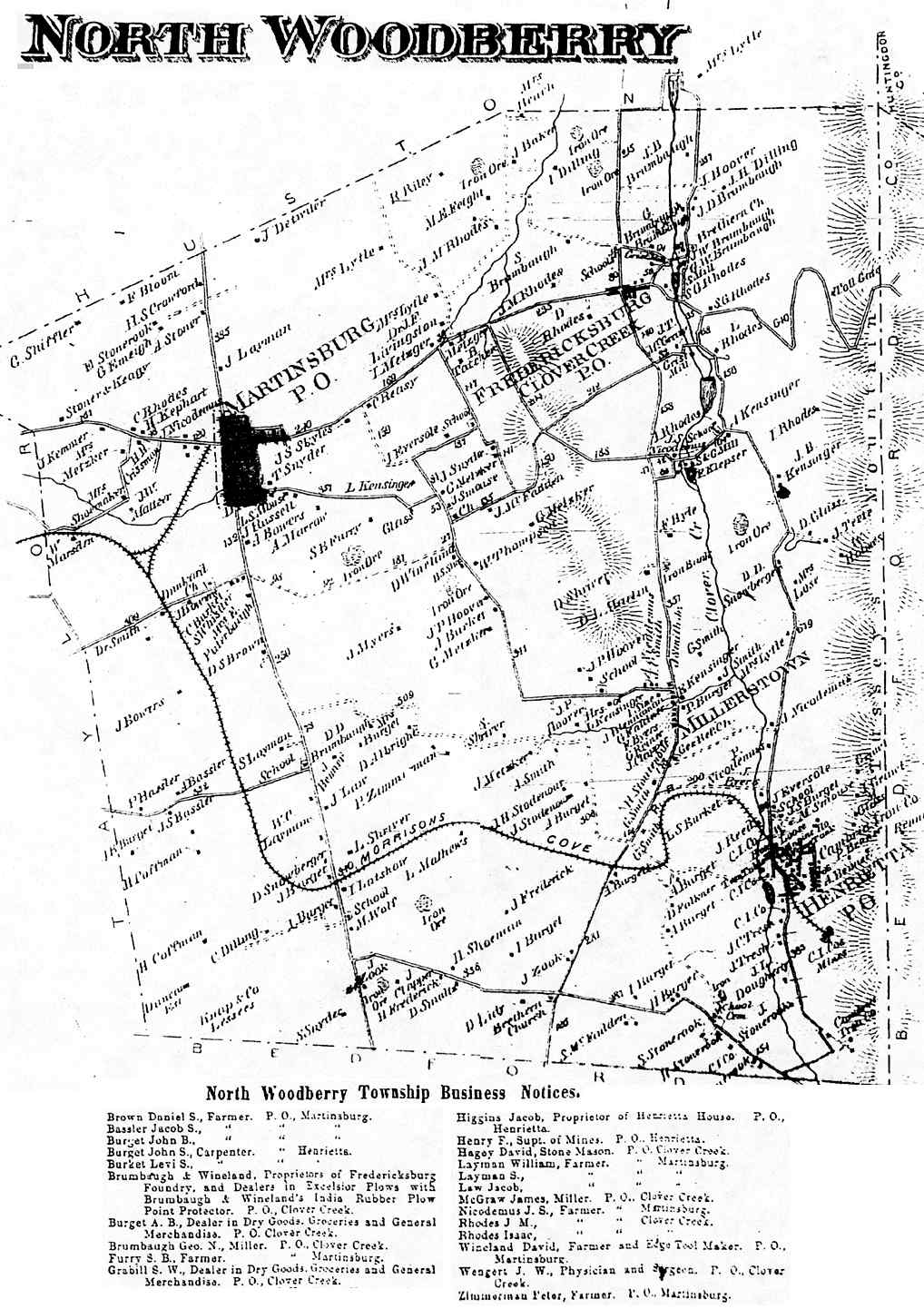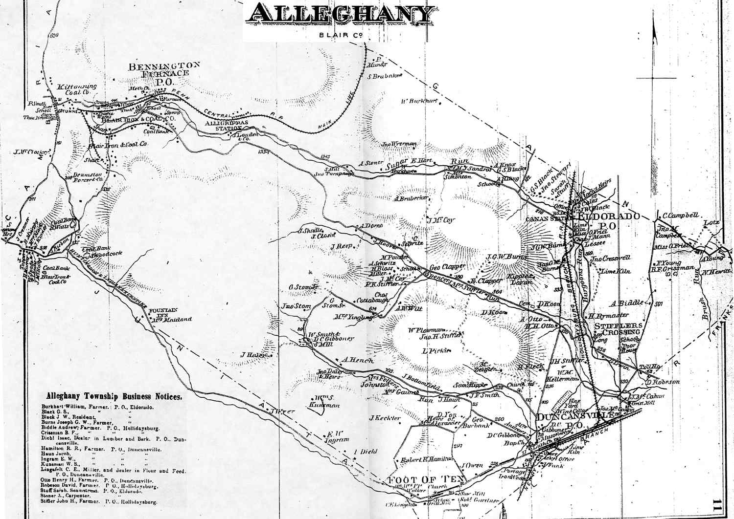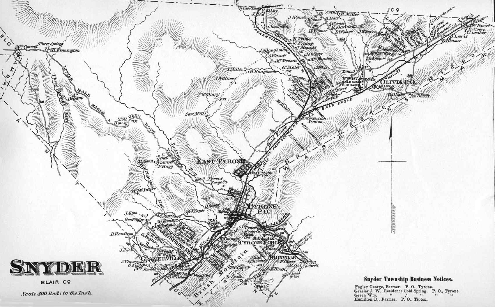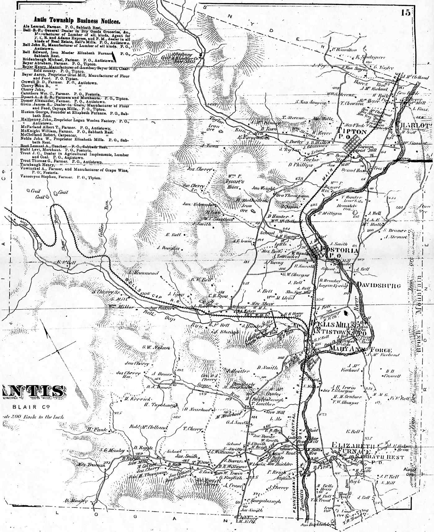 Altoona Business Claysburg (Greenfield) Calvertville (Logan) Duncansville (Allegheny) East Freedom (Freedom) East Sharpsburg (Taylor) East Tyrone (Snyder) Foot Of Ten (Allegheny) Fostoria (Antis) Frankstown (Frankstown) Hollidaysburg (1) (Blair) Hollidaysburg(2) (Blair) Ironville (Snyder) Martinsburg (N. Woodberry) McCartneyville Newry (Blair) Roaring Springs (Taylor) Tyrone Forge (Snyder) Tyrone (Snyder) Tyrone Business Williamsburg (Woodberry) |