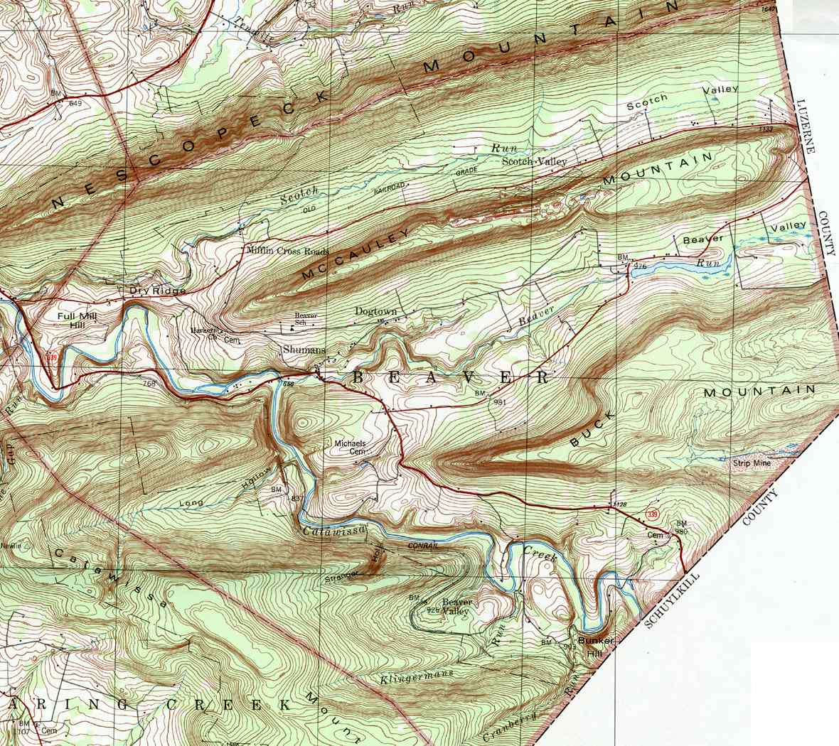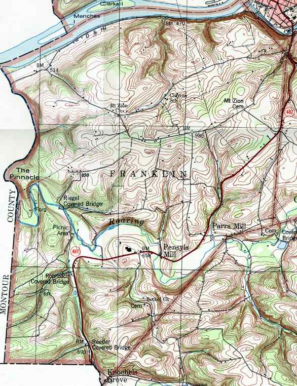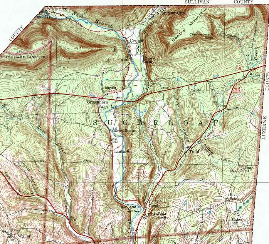 Image Map: This is a clickable image map of townships and boroughs in Columbia County Pennsylvania. A text list of the township maps is shown below. The township images are cropped from a 1/50,000 USGS Geological Survey Map of Columbia County dated 1979; based on 1/24,000 maps dated 1953 through 1969. Adjacent counties shown on the image map have active links to their USGS maps. County Genealogy Sites: Link to Pennsylvania county USGenWeb sites at the bottom of the Pennsylvania Map Index page. |