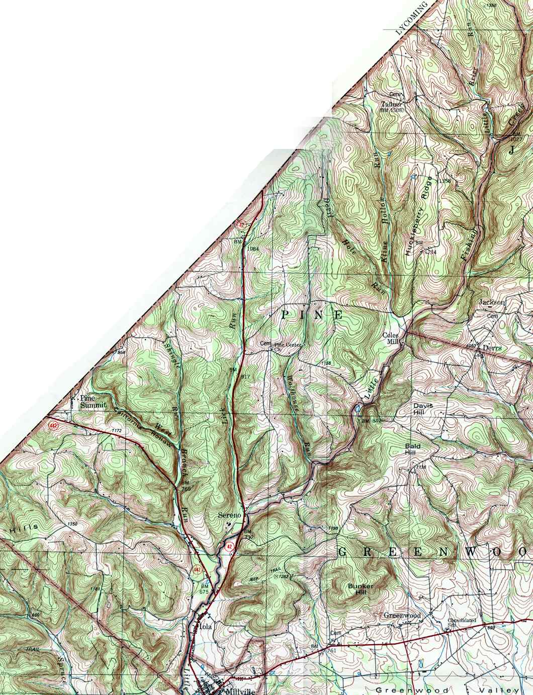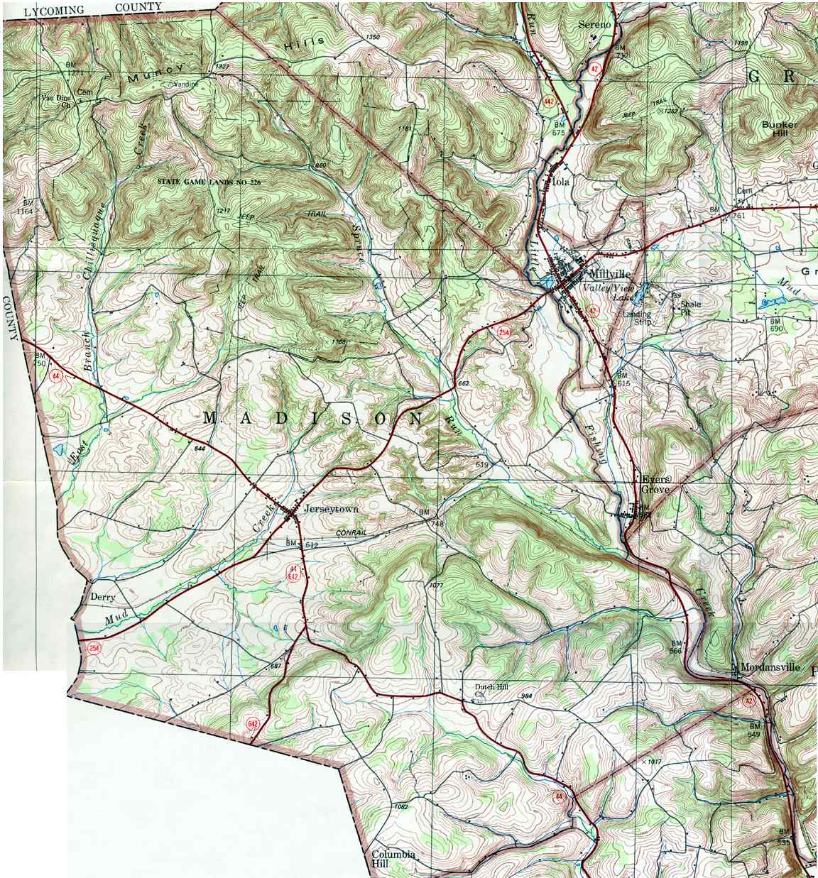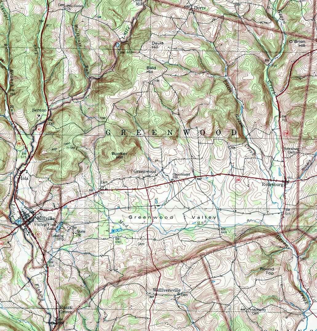 The list below shows boroughs and villages within each township; however, some townships may be combined in one map. To search for cemeteries, villages and other features visit the USGS GNIS site. Check here for information on how to order US Geological Survey Maps of Pennsylvania counties.