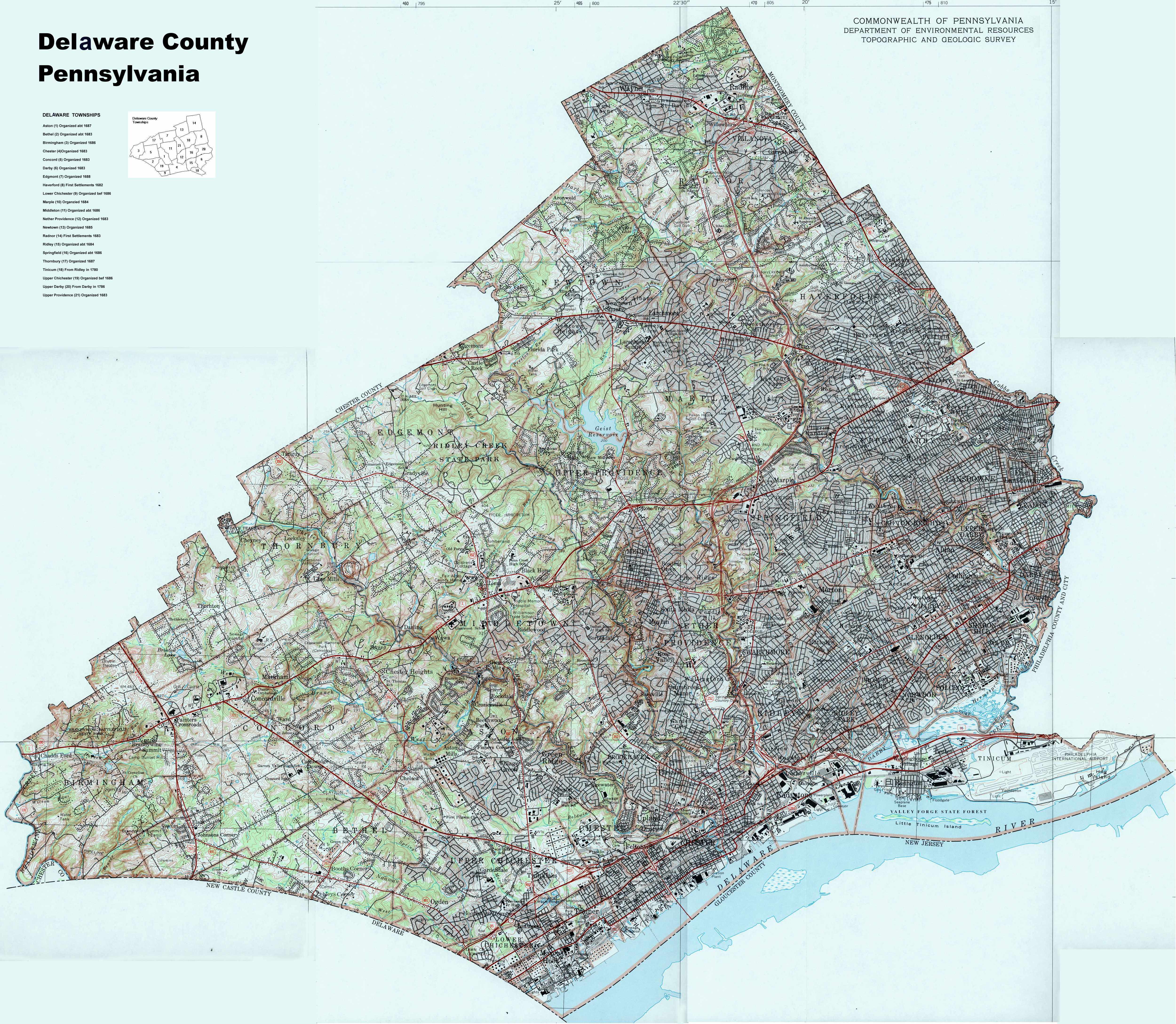 List of Delaware County TownshipsTo search for cemeteries, villages and other features visit the USGS GNIS site. Check here for information on how to order US Geological Survey Maps of Pennsylvania counties.