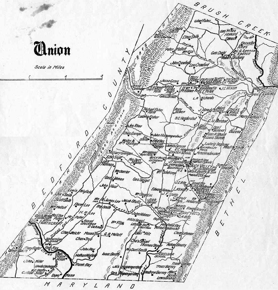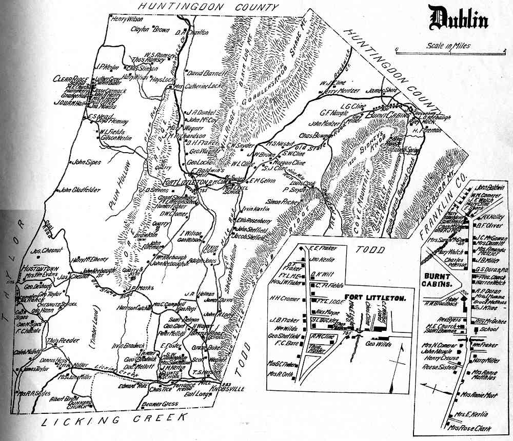 Township maps of Fulton County Pennsylvania from the Atlas of Fulton County, Pennsylvania compiled and published by Frank P. Plessinger, County Surveyor, Locust Grove, PA. and Francis M. Taylor, C.E., McConnellsburg, PA., 1916.