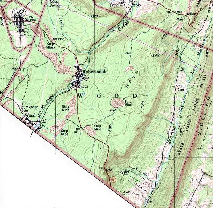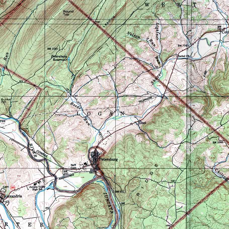 Image Map: This is a clickable image map of townships and boroughs in Huntingdon County Pennsylvania. A text list of the township maps is shown below. The township images are cropped from a 1/50,000 USGS Geological Survey Map of Huntingdon County dated 1986; based on 1/24,000 maps dated 1959 through 1968. The adjacent counties shown on the image map are links to their USGS maps. County Genealogy Sites: Link to Pennsylvania county USGenWeb sites at the bottom of the Pennsylvania Map Index page. |