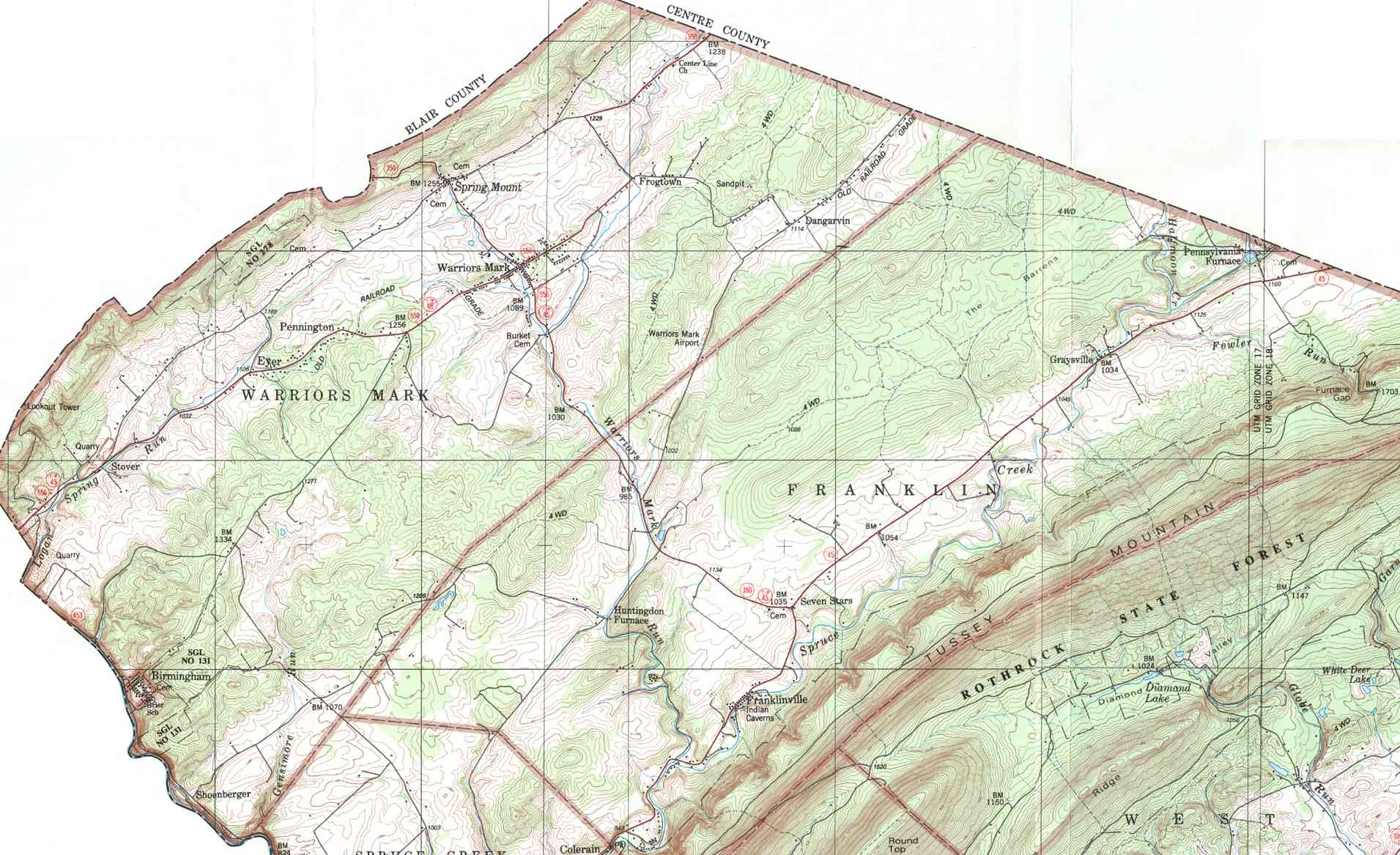 - Warriors Mark (and Franklin), Birmingham, Dangarvin, Eyer, Frogtown, Pennington, Shoenberger, Spring Mount, Stover, Warriors Mark
