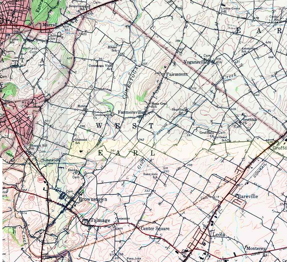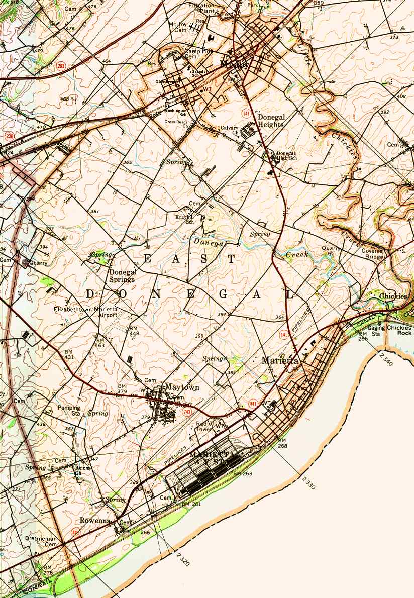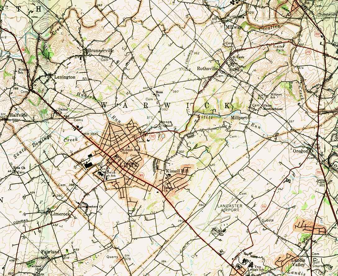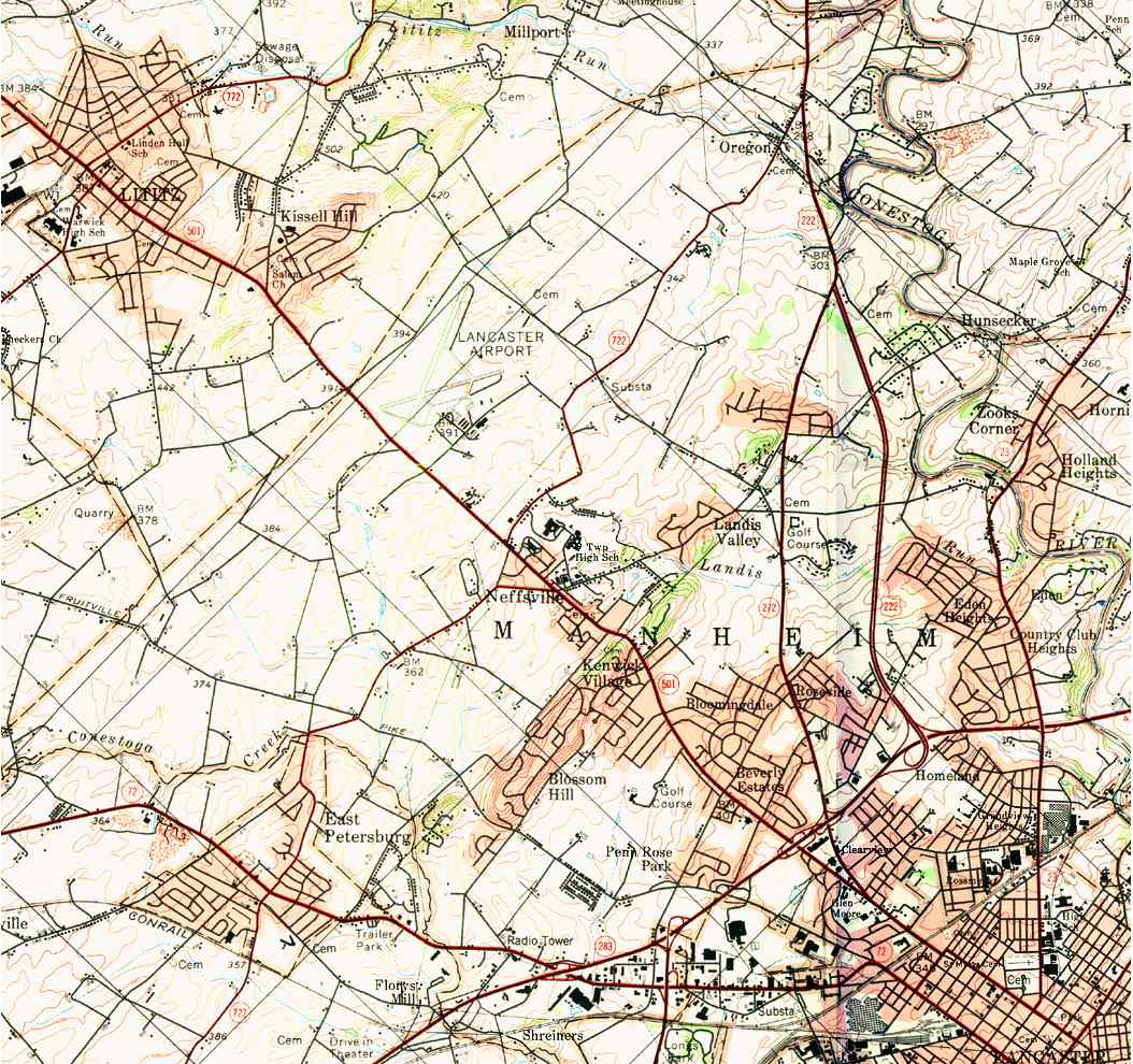 Image Map: This is a clickable image map of townships and boroughs in Lancaster County Pennsylvania. A text list of the township maps is shown below. The township images are cropped from a 1/50,000 USGS Geological Survey Map of Lancaster County dated 1977; based on 1/24,000 maps dated 1953 through 1964. Adjacent counties shown on the image map have active links to their USGS maps. Note: The USGS map was printed 45 degrees counter-clockwise from the usual north/south orientation. County Genealogy Sites: Link to Pennsylvania county USGenWeb sites at the bottom of the Pennsylvania Map Index page. |