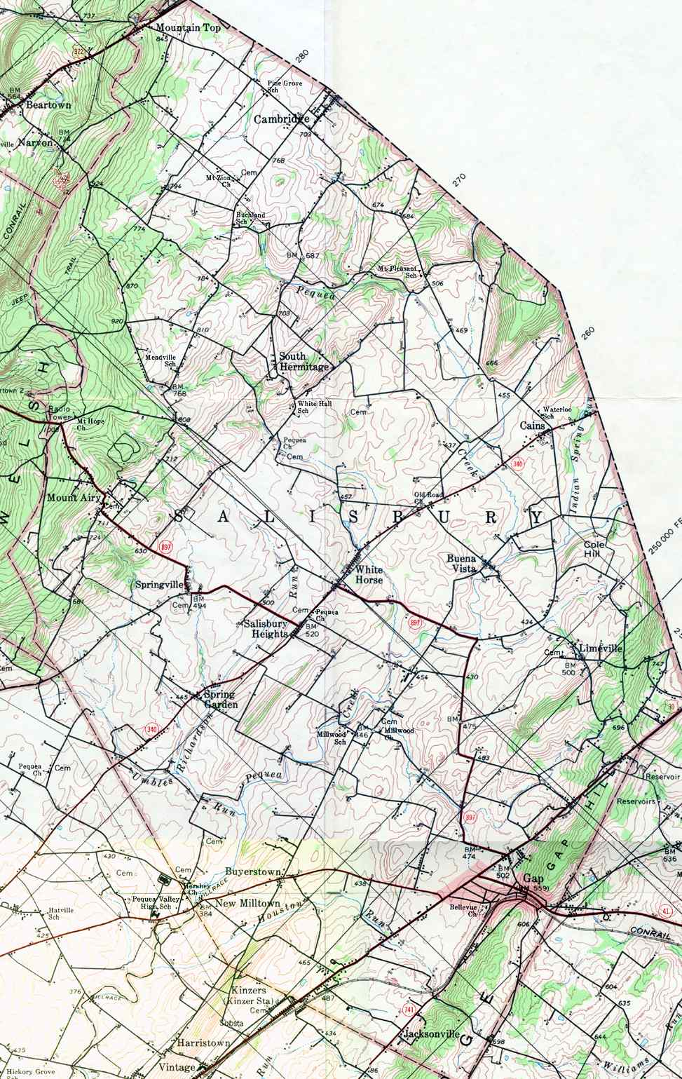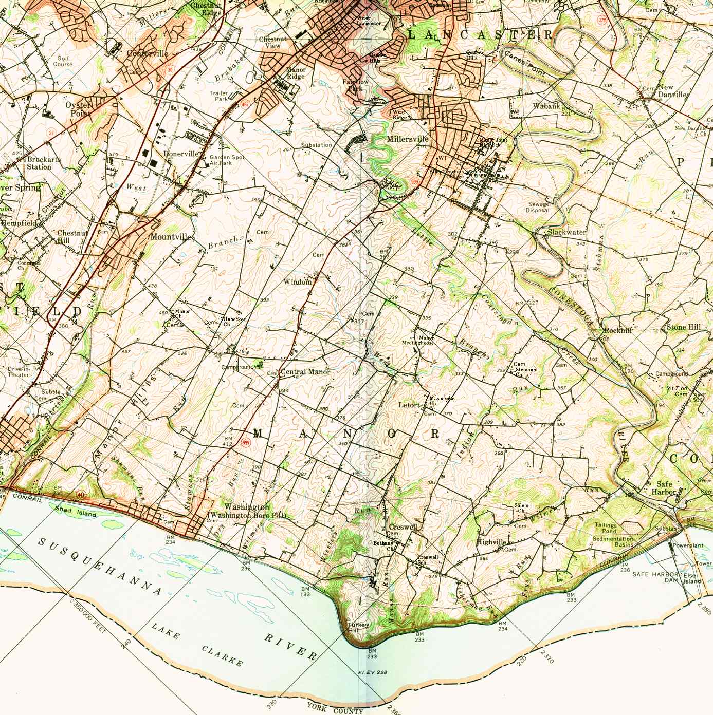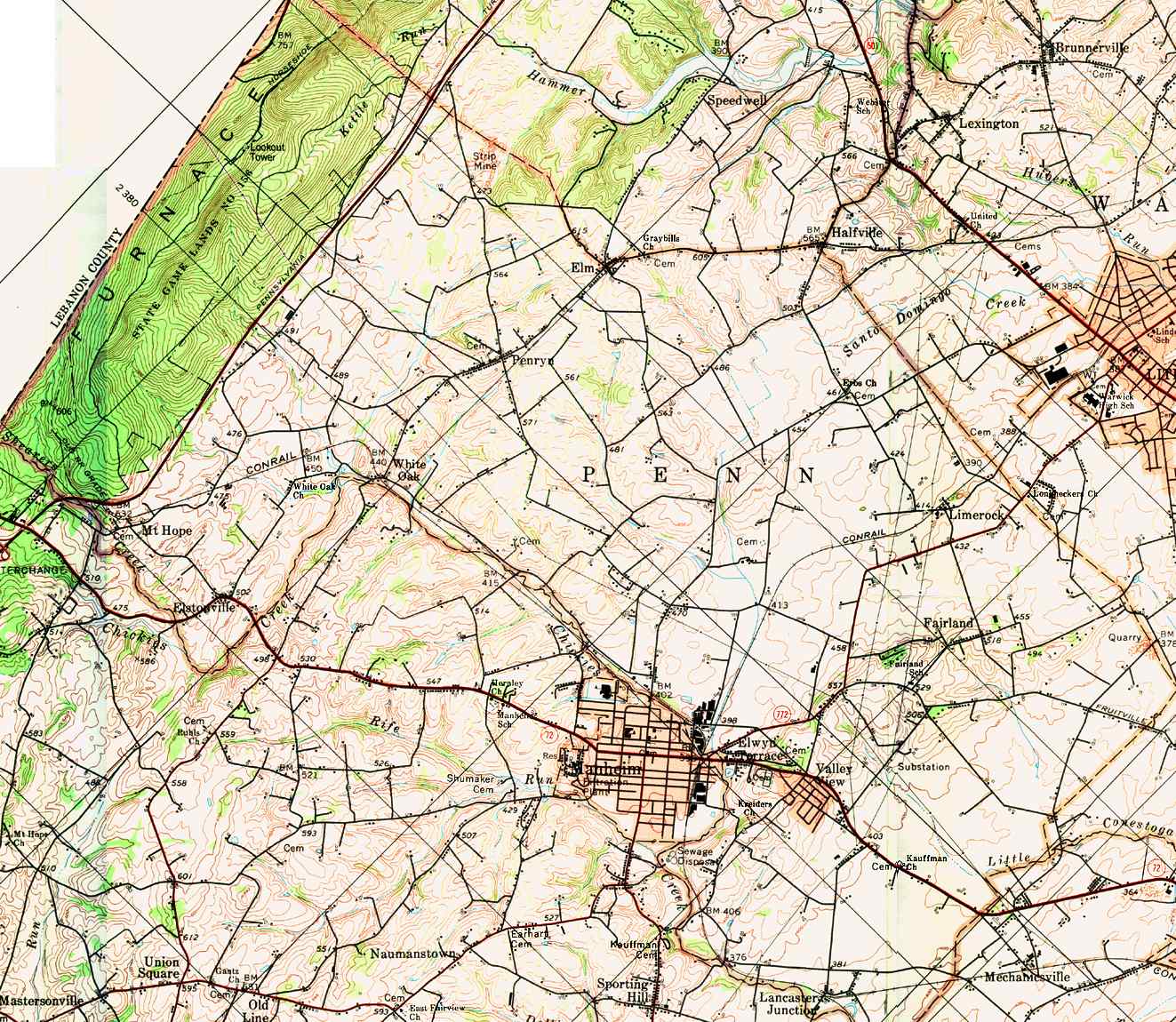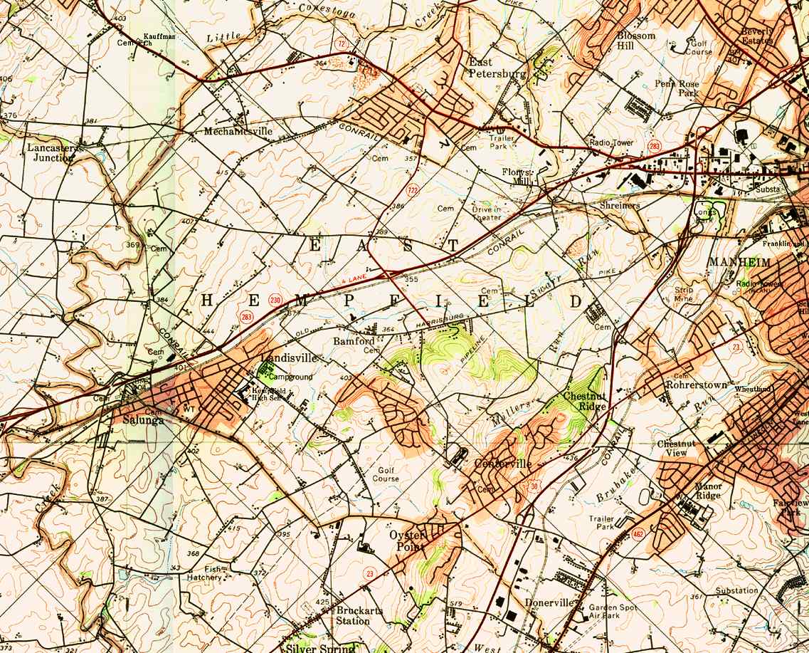 Image Map: This is a clickable image map of townships and boroughs in Lancaster County Pennsylvania. A text list of the township maps is shown below. The township images are cropped from a 1/50,000 USGS Geological Survey Map of Lancaster County dated 1977; based on 1/24,000 maps dated 1953 through 1964. Adjacent counties shown on the image map have active links to their USGS maps. Note: The USGS map was printed 45 degrees counter-clockwise from the usual north/south orientation. County Genealogy Sites: Link to Pennsylvania county USGenWeb sites at the bottom of the Pennsylvania Map Index page. |
