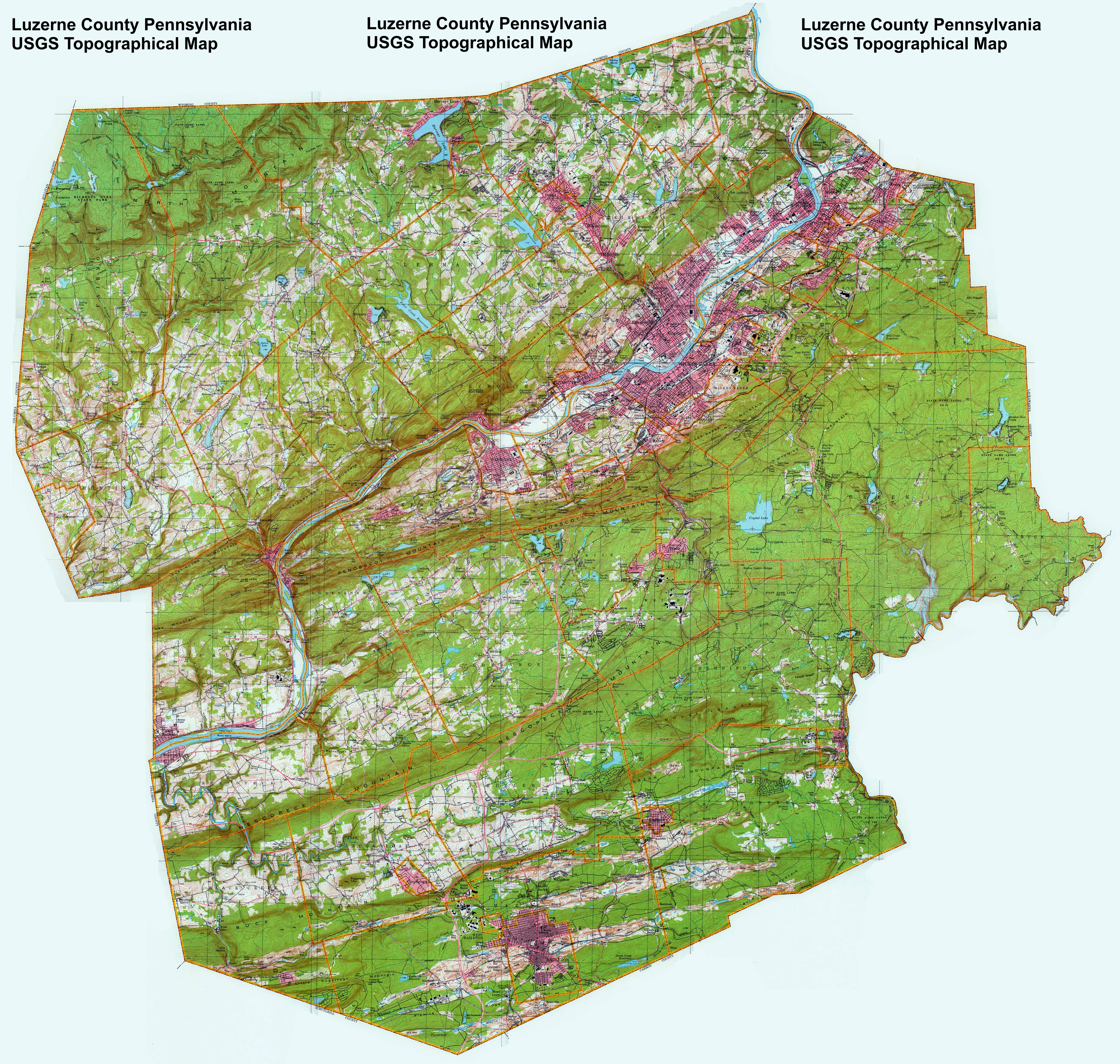 Image Map: The image map shown below shows townships and boroughs in Luzerne County Pennsylvania. A text list of the townships is shown below. The source map is a 1/50,000 USGS Geological Survey Map of Luzerne County dated 1980; based on 1/24,000 maps dated 1946 through 1969. The adjacent counties shown on the image map are links to their USGS maps. Go to this site to see the Luzerne County Town and Boro Formation. The Luzerne County USGS Map is presented in its entirety (about 7MB). |