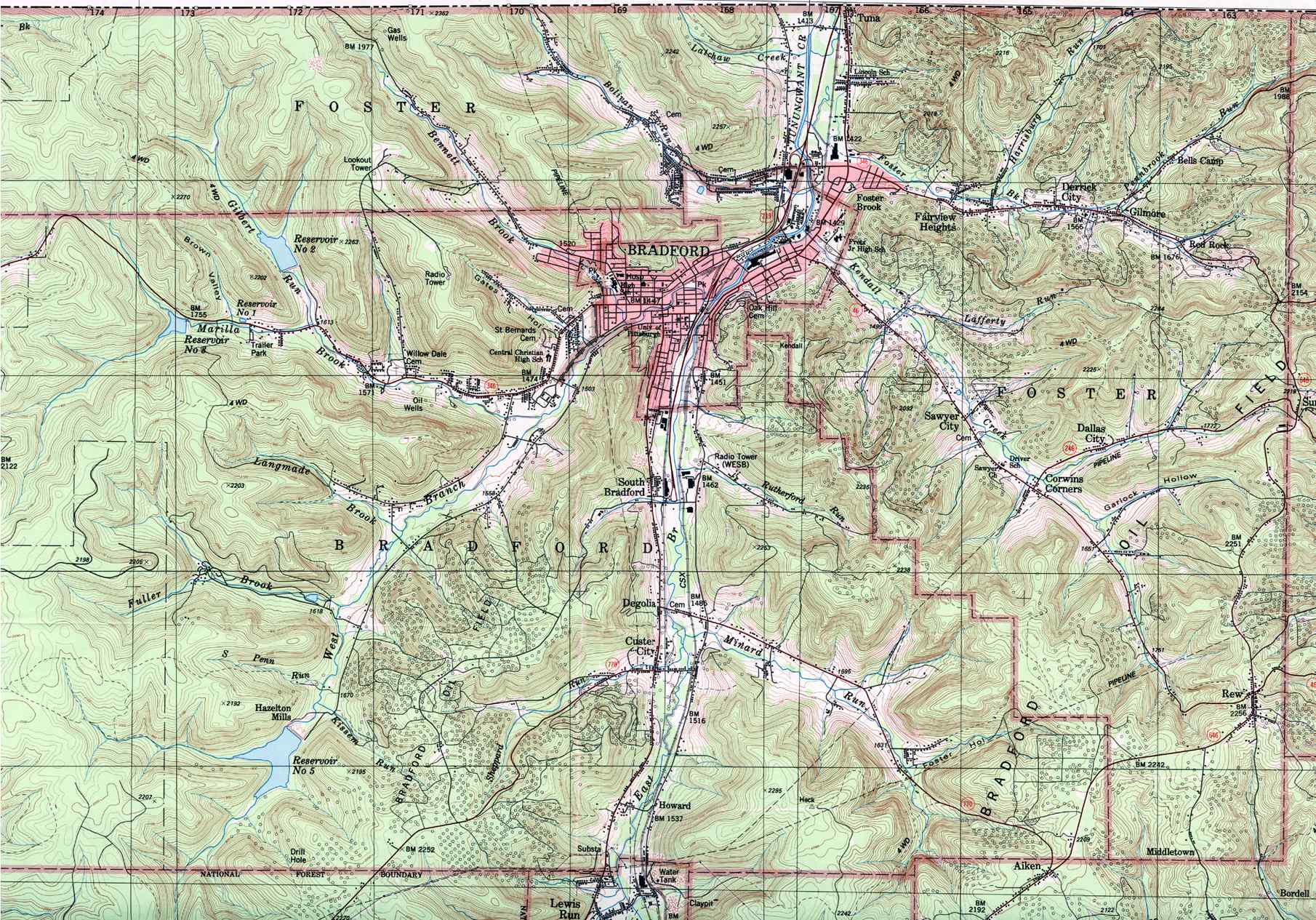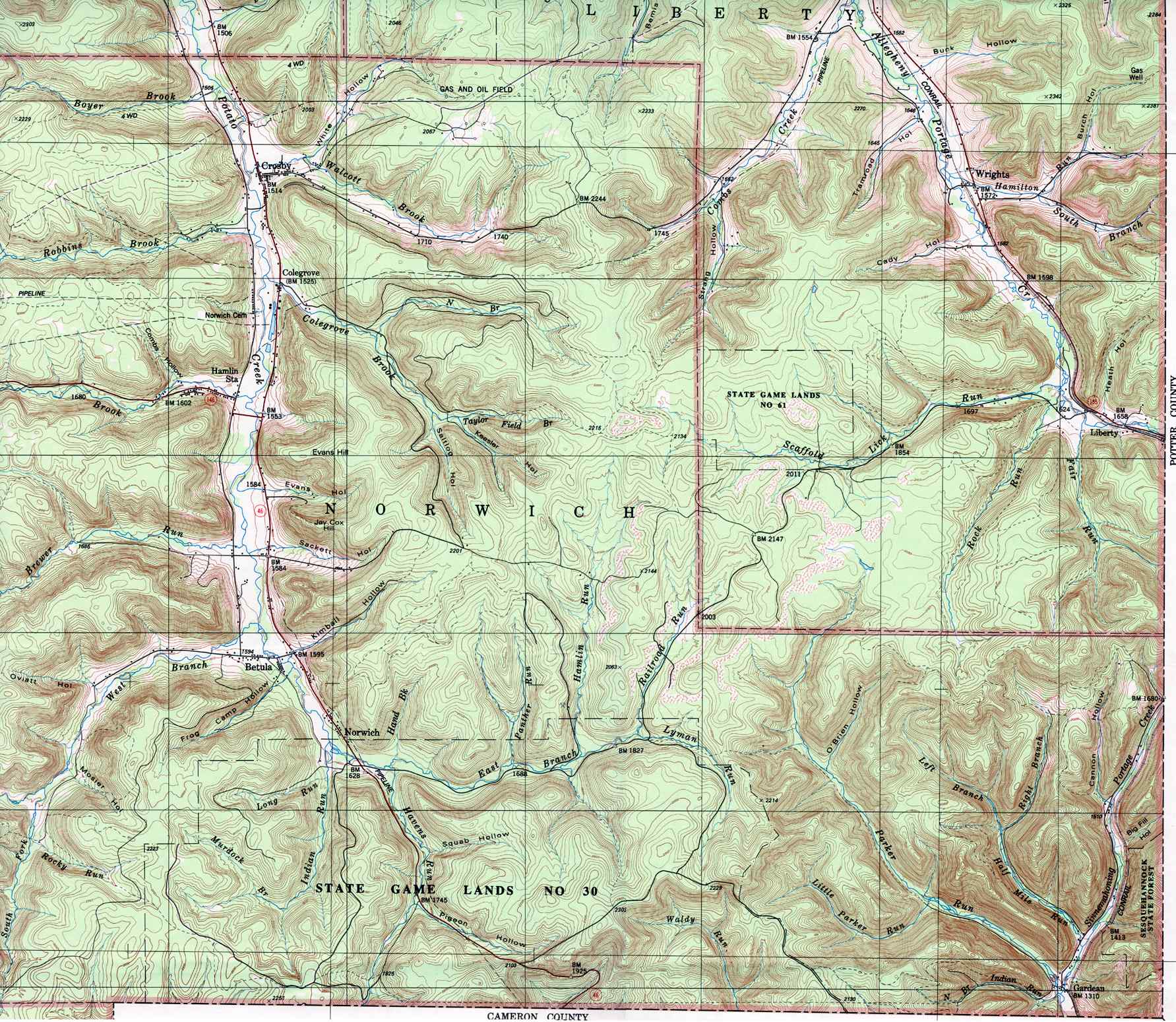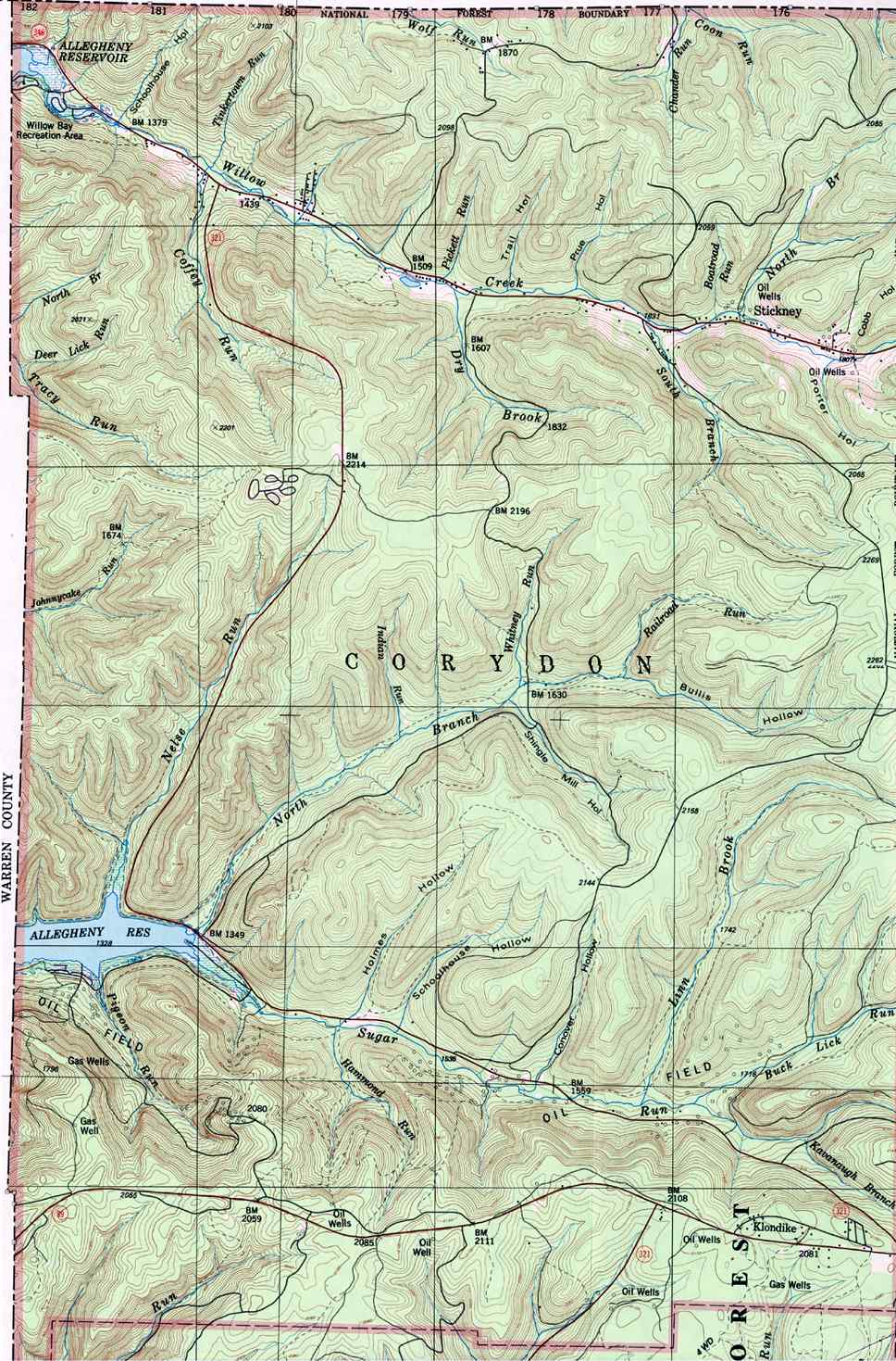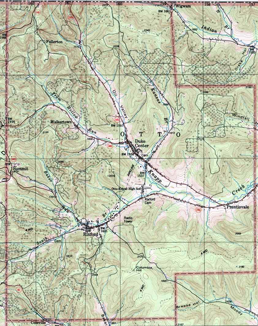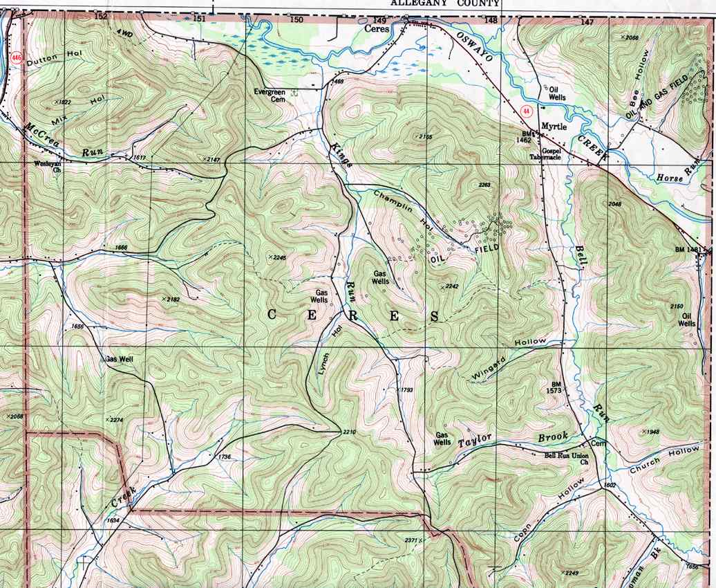 Image Map: This is a clickable image map of townships and boroughs in McKean County Pennsylvania. A text list of the township maps is shown below. The township images are cropped from a 1/50,000 USGS Geological Survey Map of McKean County dated 1987; based on 1/24,000 maps dated 1948 through 1969. The adjacent counties shown on the image map are links to their USGS maps. County Genealogy Sites: Link to Pennsylvania county USGenWeb sites at the bottom of the Pennsylvania Map Index page. |